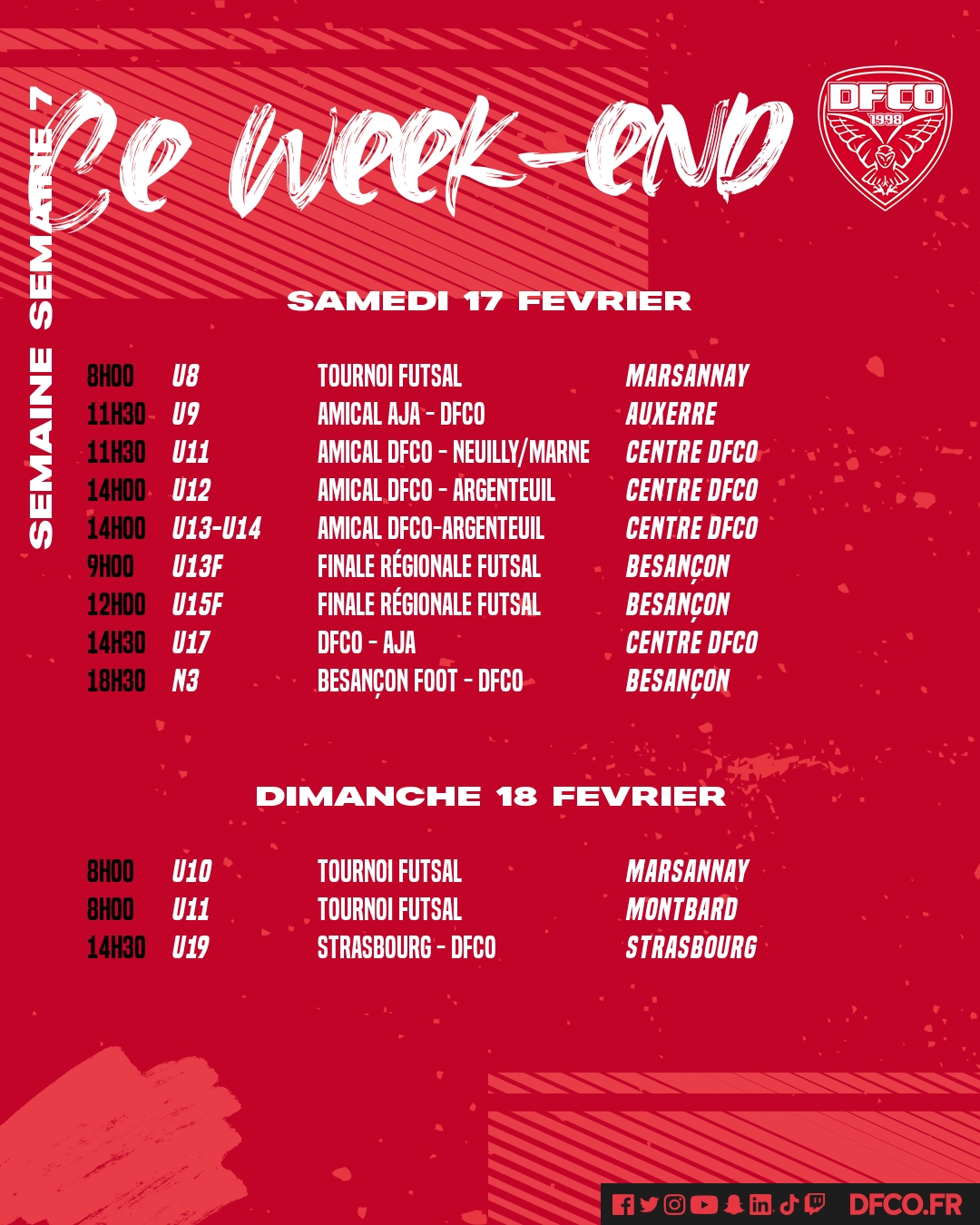 Retrouvez le planning des jeunes de la formation pour ce week-end du 17 et 18 février.