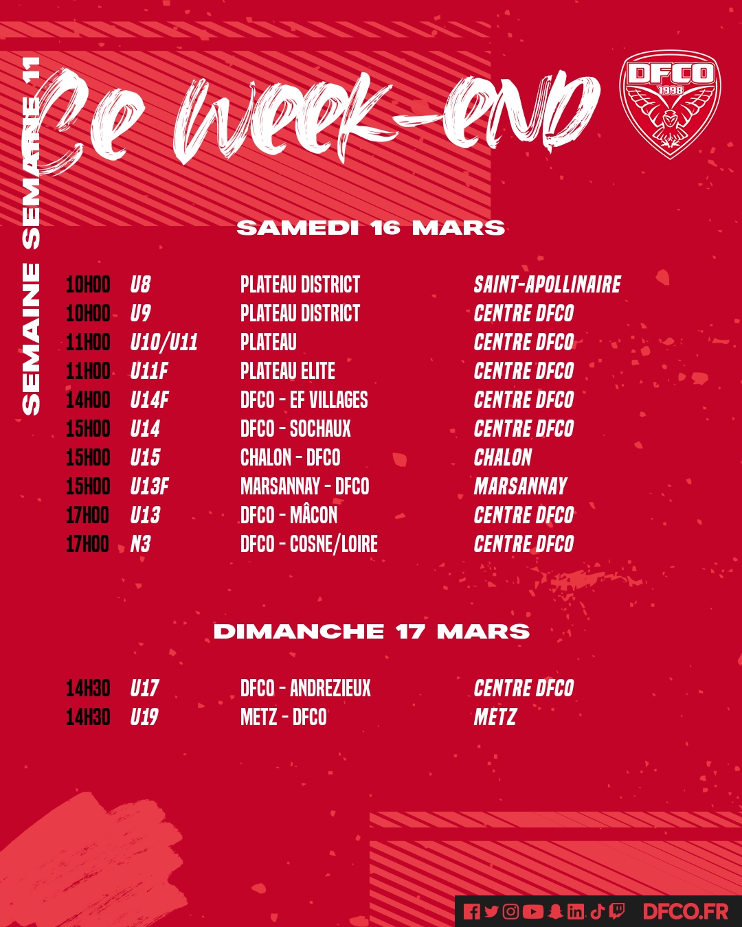 Retrouvez le planning des jeunes de la formation pour ce week-end du 16 et 17 mars.