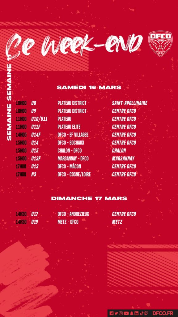 Samedi, la N3 recevra Cosne/Loire à 17h sur les terrains du centre d’entraînement. Dimanche, les U17 recevront Andrezieux à 14h30 et les U19 seront en déplacement du côté de Metz.