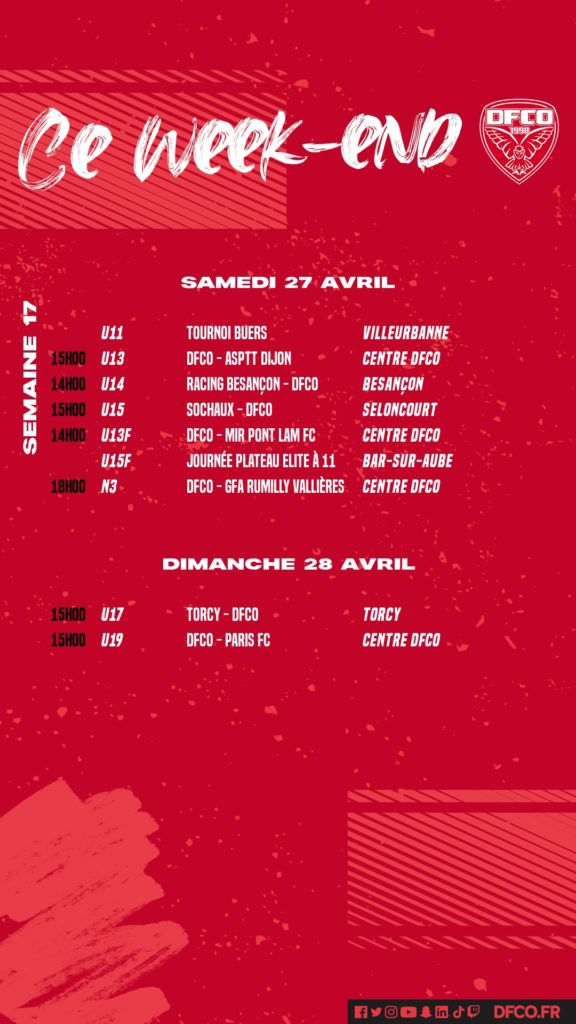 Retrouvez le planning des jeunes de la formation pour ce week-end du 27 et 28 avril.