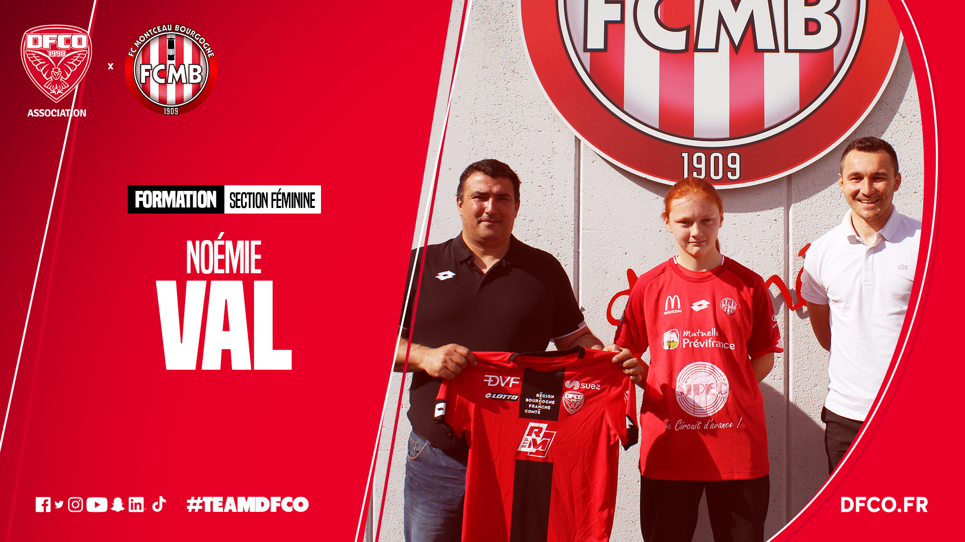 Elle rejoindra l'ancienne Montcelienne, Coralie Delacellery, joueuse U17. En présence de Ludovic Rossi, du responsable du pôle formation féminin, de la Présidente du FCMB Nicole Pietka, d"Hugues Scahffer, responsable de la section féminine, de son éducateur Eddy Nicosia et de ses parents, Noémie a accepté le projet de la formation dijonnaise d"une durée de 3 ans.