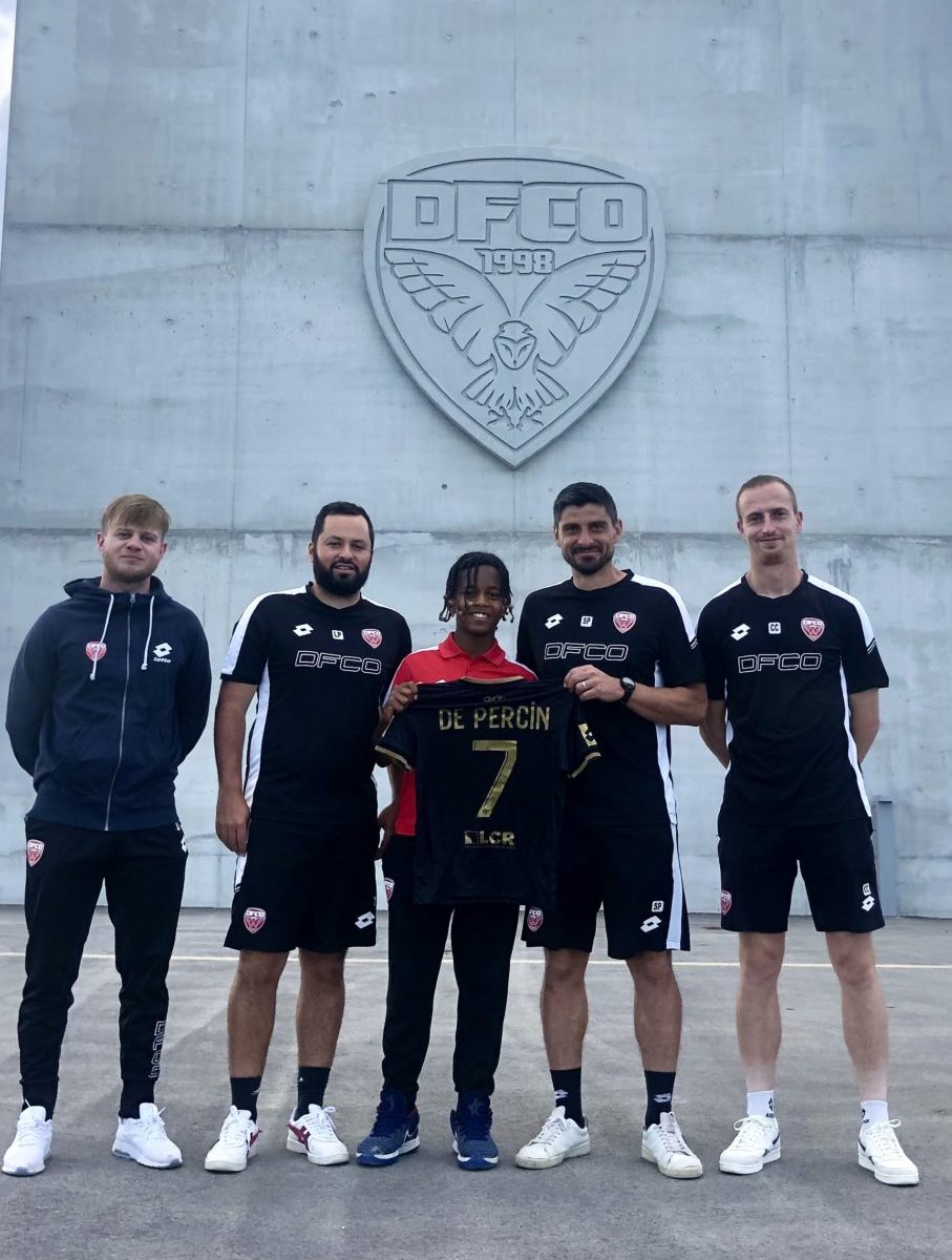 Licencié au DFCO dans la catégorie U13, Tayron De Percin s’est engagé dans la durée avec son club du Dijon FCO, en présence de sa famille, de ses éducateurs, du responsable de la Préformation, Sébastien Perrin et du responsable du recrutement des jeunes, Thomas Fabre.