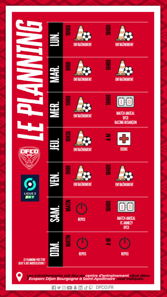 Mercredi soir (19h00), les Rouges joueront un premier match amical au stade Gaston-Gérard contre le Racing Besançon (infos billetterie ici), puis samedi contre le FC Annecy à Lons-le-Saunier (16h00).
