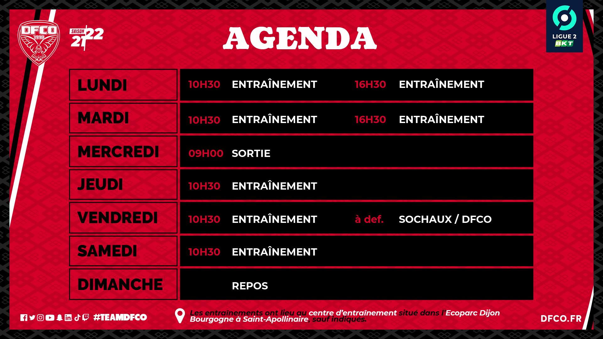 Deuxième semaine de préparation pour le groupe dijonnais qui sera marquée par le premier match amical de l'intersaison, face au FC Sochaux Montbéliard, au stade Léo Lagrange de Besançon. L'horaire reste encore à confirmer.