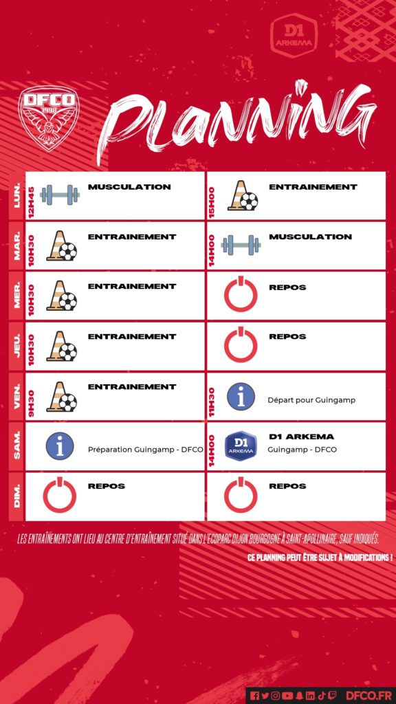 Sur une belle dynamique avec 2 victoires consécutives, le groupe D1 Arkema doit rester mobilisé pour un dernier match en 2023 sur la pelouse de Guingamp, concurrent direct pour le maintien ! Retrouvez le planning de la semaine.