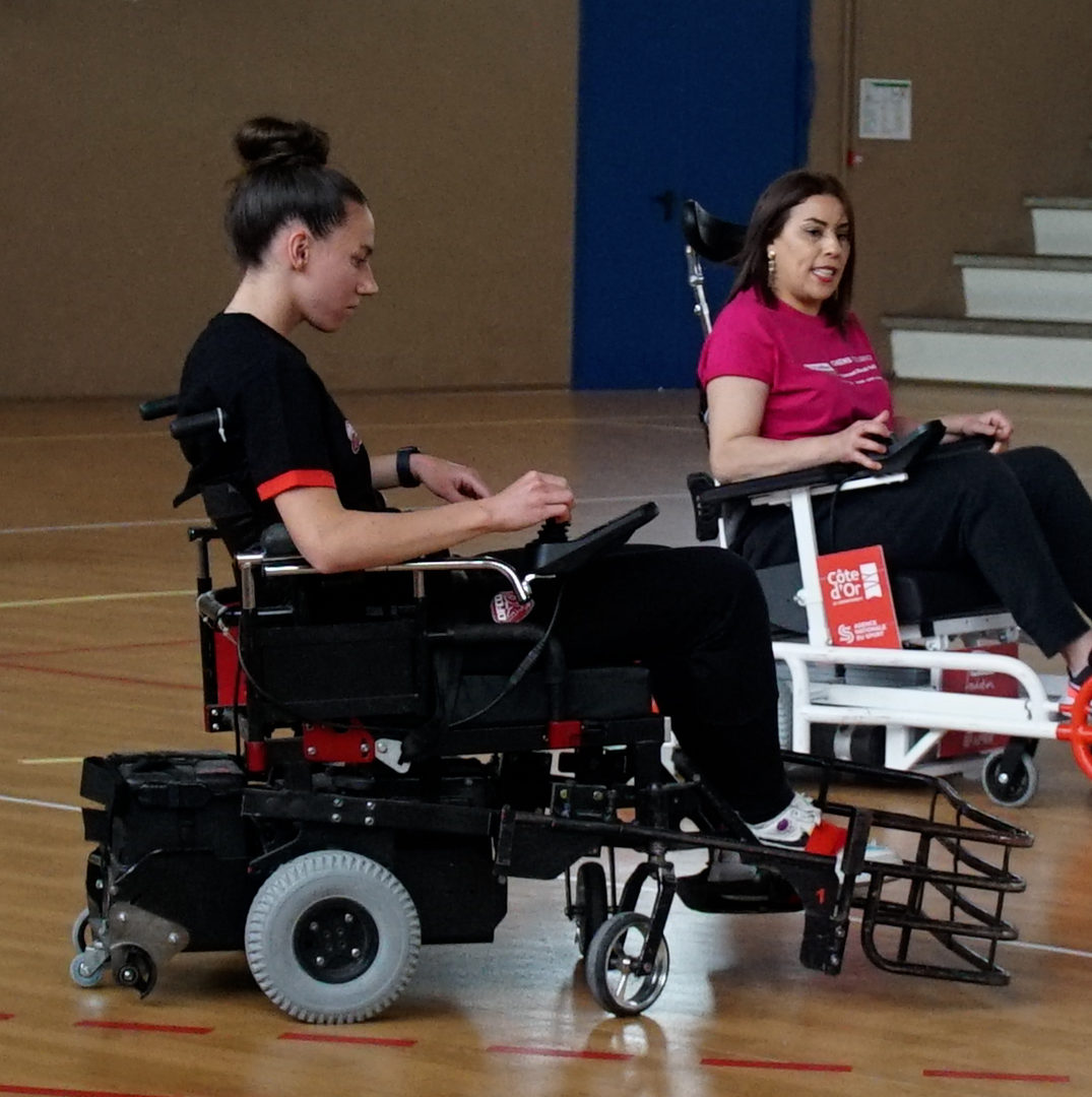 Ekaterina Tyryshkina, Mylaine Tarrieu et Inès Barrier étaient au complexe de Louzole à Saint-Apollinaire pour une initiation au foot-fauteuil.