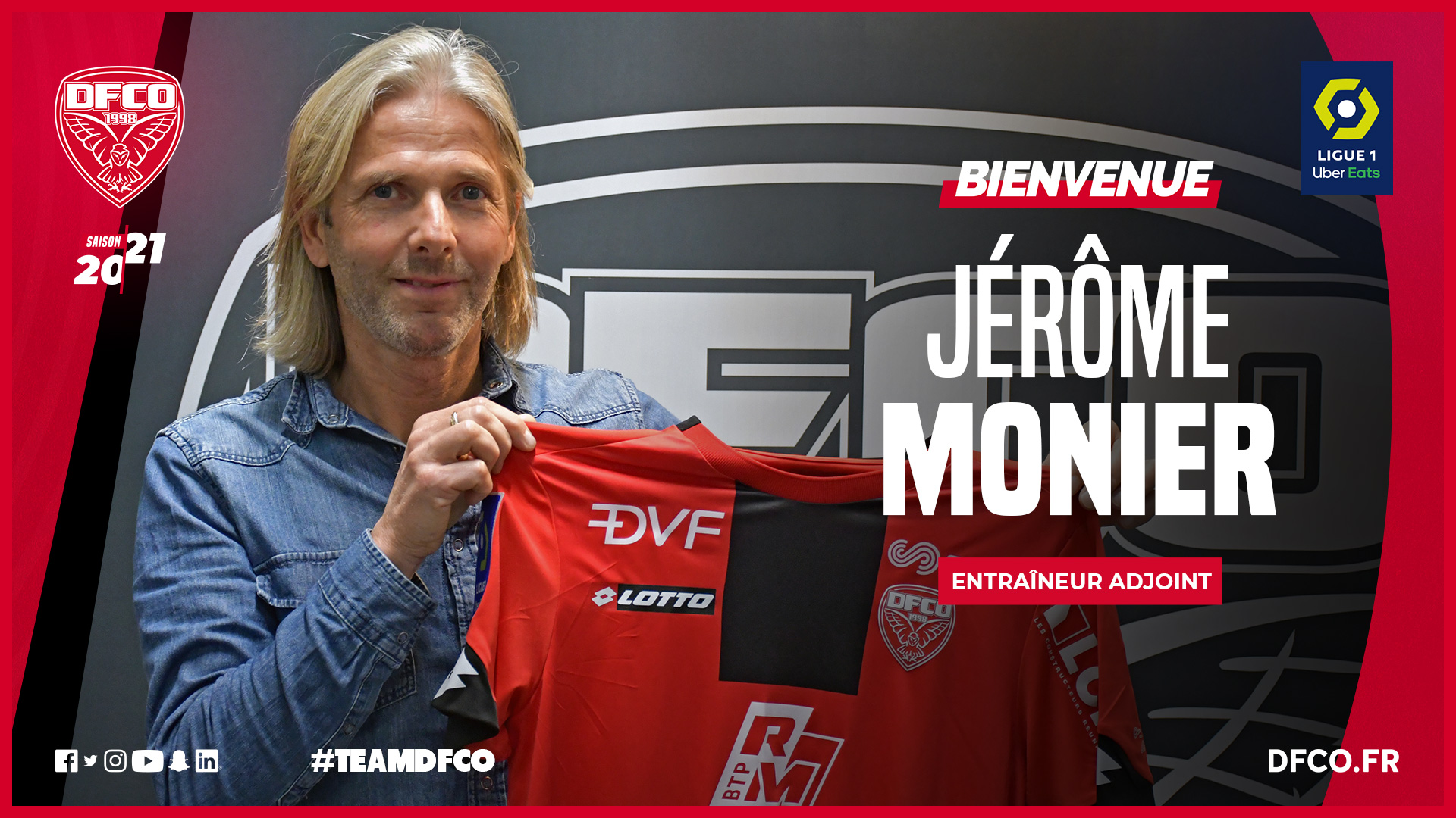 Jérôme Monier effectue son retour au DFCO ! Entraîneur à la formation au Stade de Reims depuis 2017, Jérôme Monier (49 ans) rejoint le staff dijonnais en tant qu’entraîneur adjoint, avec comme mission d’épauler David Linarès. Les deux clubs ont trouvé un accord pour le libérer de son contrat.