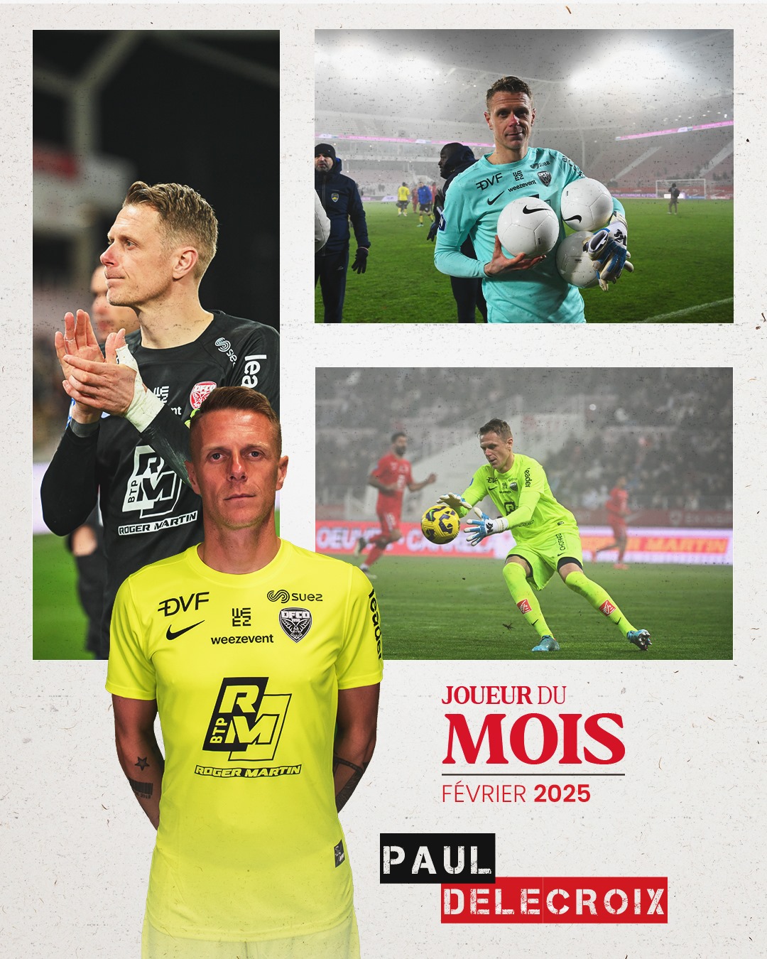 Lors de chaque rencontre de National les supporters dijonnais ont la possibilité de voter pour le joueur du match. Le cumul des votes permet de désigner le Joueur du Mois. En février, c’est Paul Delecroix qui est arrivé en tête des suffrages !