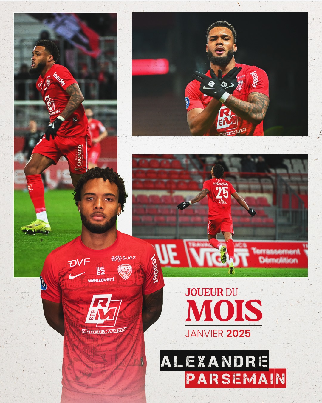 Lors de chaque rencontre de National les supporters dijonnais ont la possibilité de voter pour le joueur du match. Le cumul des votes permet de désigner le Joueur du Mois. En janvier, c’est Alexandre Parsemain qui est arrivé en tête des suffrages !