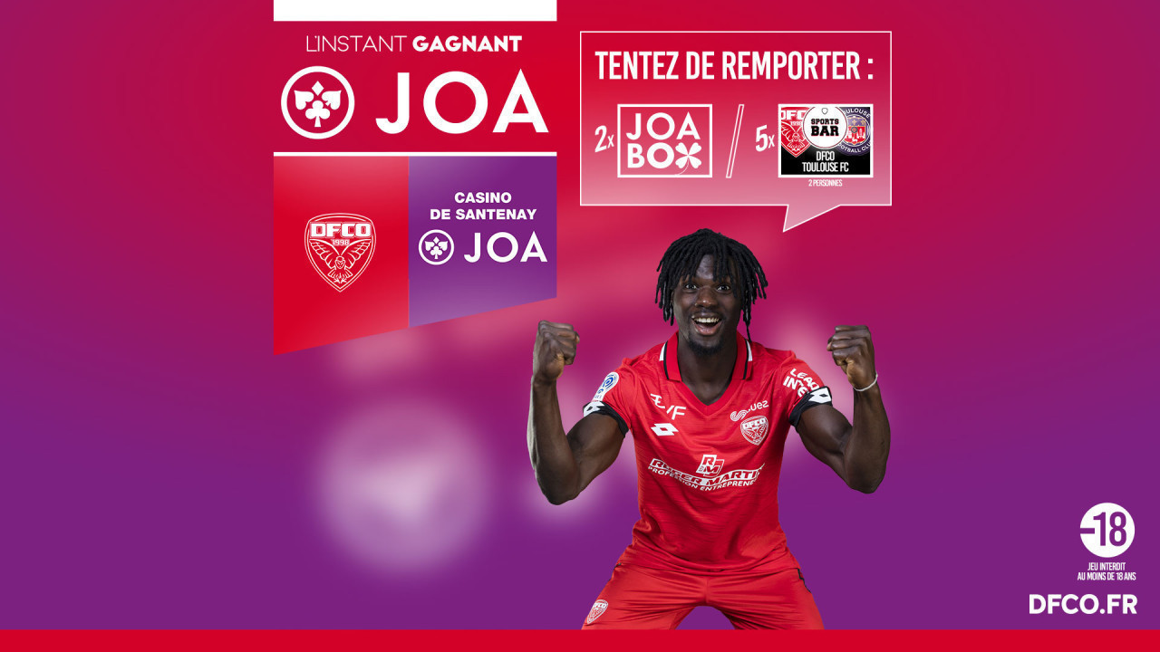 Venez tenter votre chance avec notre partenaire, le Casino JOA de Santenay. Cette semaine, 2 JOABOX et 5x2 places Sports Bar pour la rencontre DFCO - Toulouse du 7 mars.