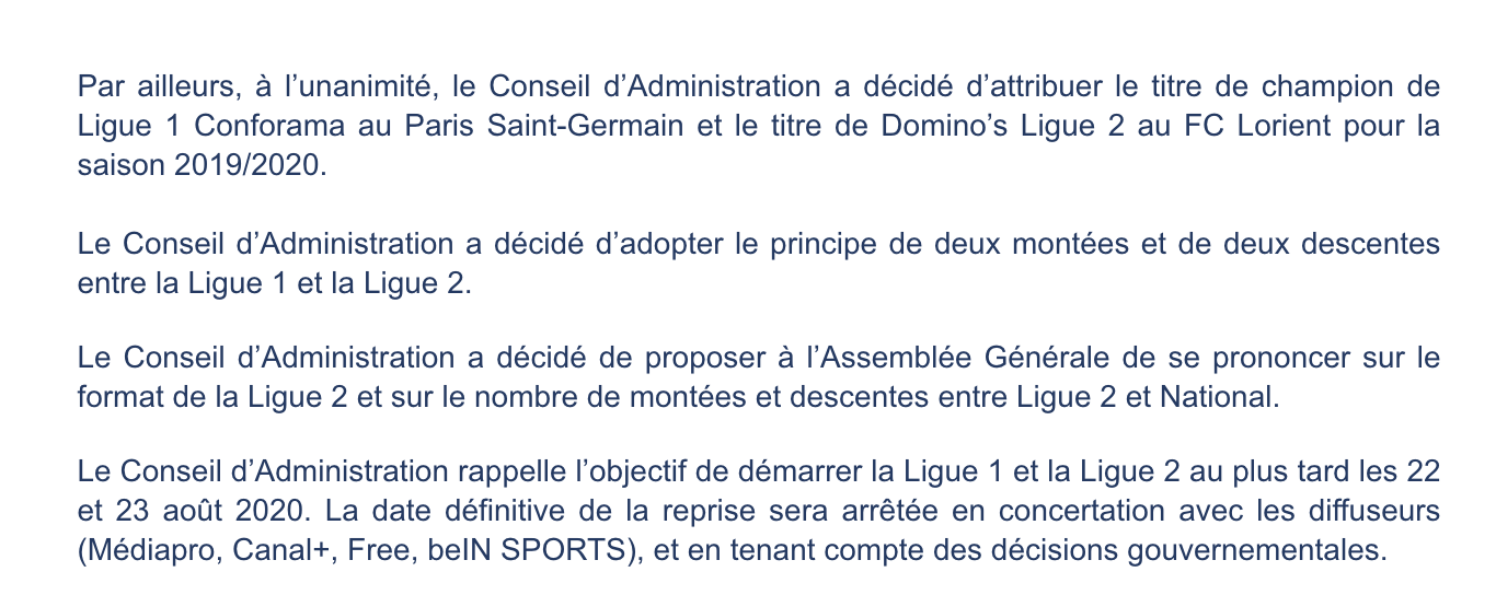 Voici le communiqué officiel de la LFP
