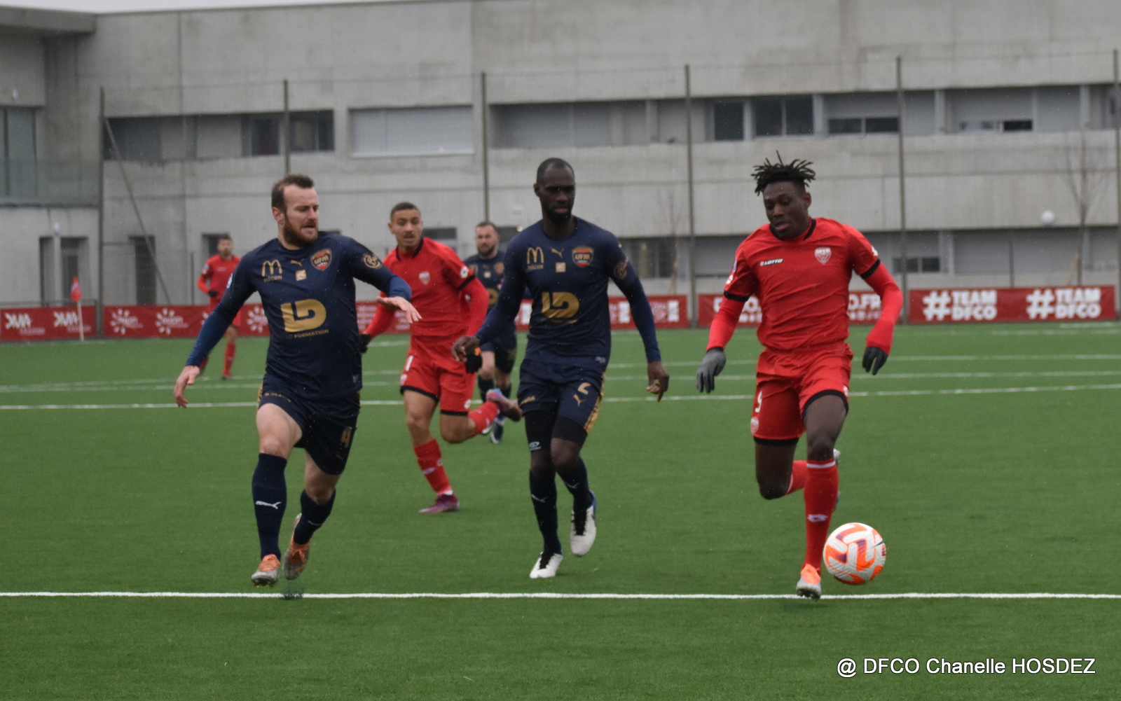 A l’image du DFCO en première période, Pontarlier refait son retard en quatre minutes au retour des vestiaires, d’abord avec un but de la tête (1-2, 56′), puis sur un contre bien emmené (2-2, 60′). Tout est à refaire pour les Rouges, qui reprennent alors le contrôle du match et finissent par arracher une belle victoire chez le leader, grâce à un dernier but de Zoran Moco, de la tête, sur un corner botté par Zakaria Ariss (2-3, 85′).