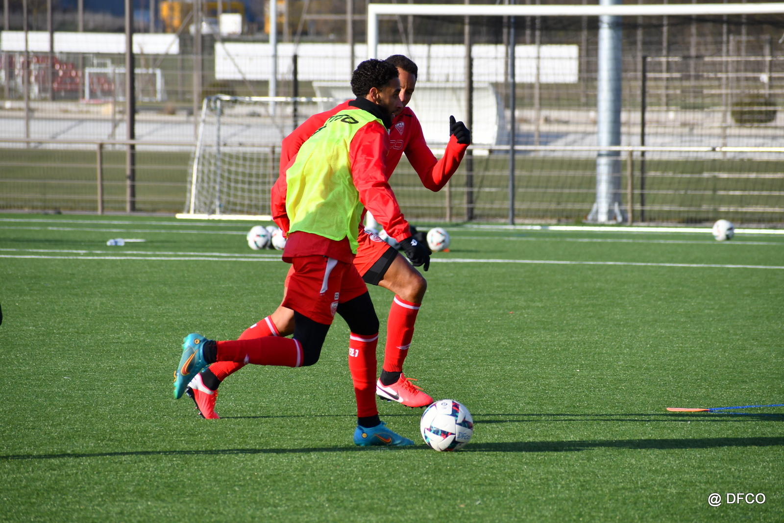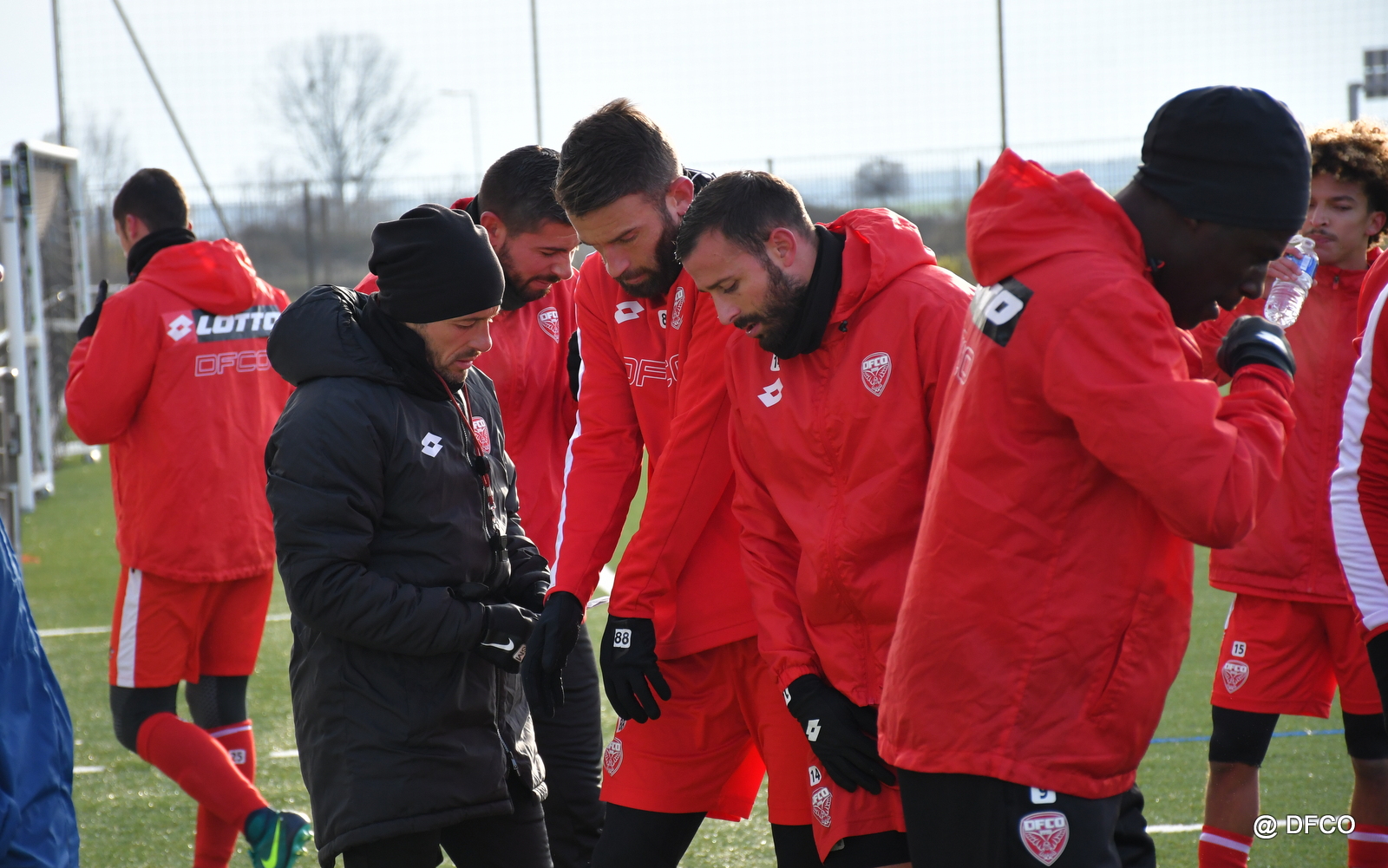 En raison des températures négatives, la pelouse était gelée. Après un échauffement sur le terrain de soccer, les joueurs ont pris la direction d’un des terrains synthétiques du Centre de formation pour une séance de qualité.