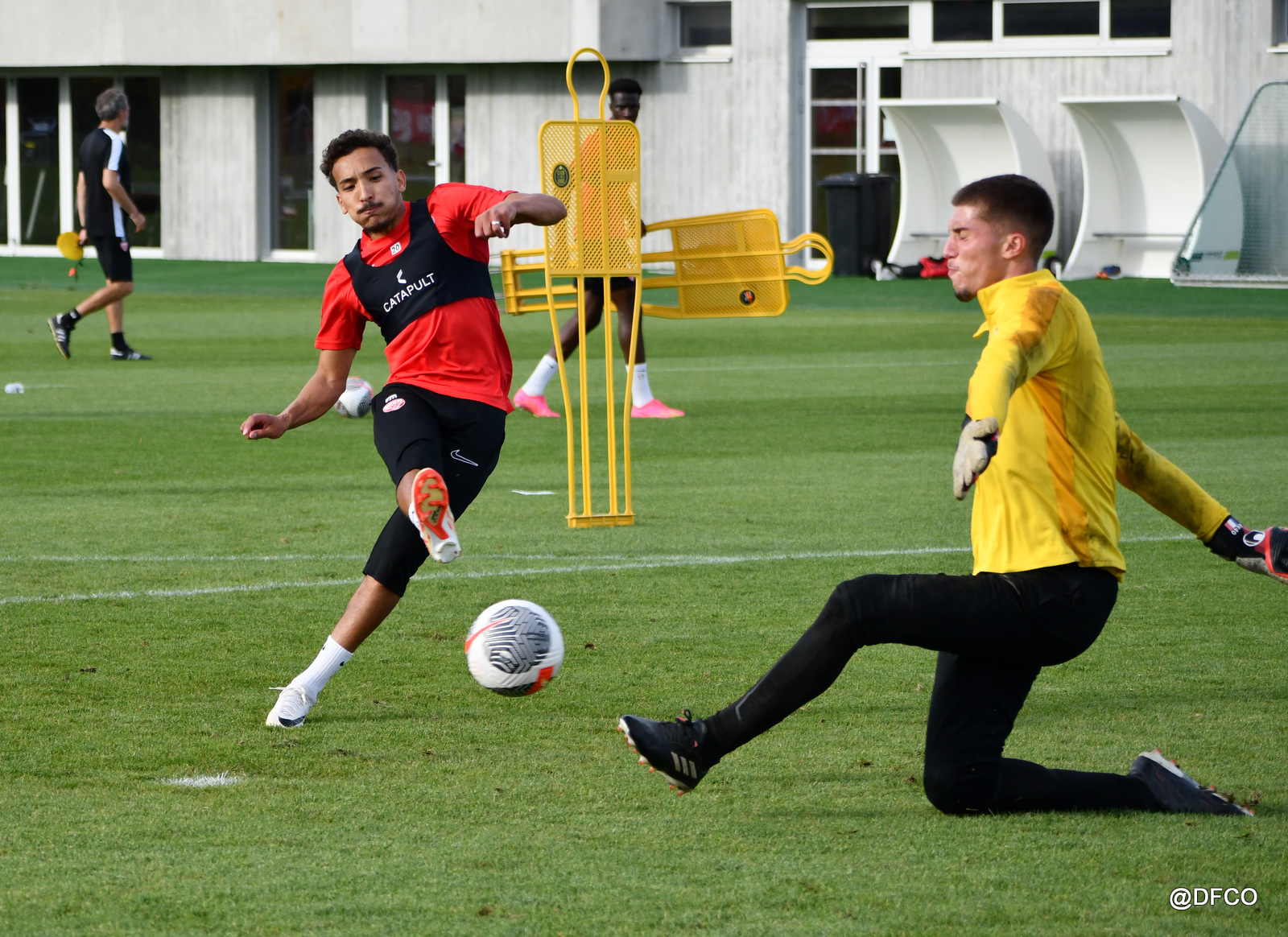 Deux jours avant d’effectuer un déplacement sur la pelouse des Champis Niortais, deuxièmes du championnat, le DFCO a continué de travailler dans la zone de vérité ! Retrouvez une quarantaine de photos de la séance du jour, ainsi qu’une vidéo spécifique attaquants !