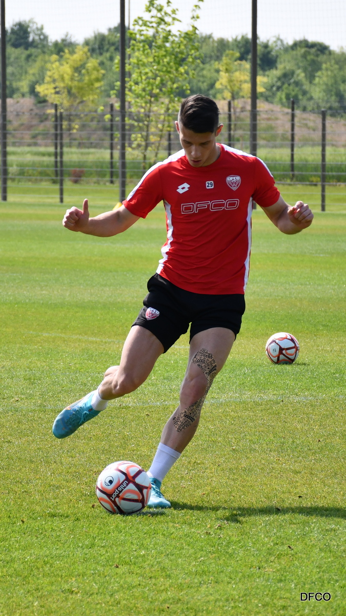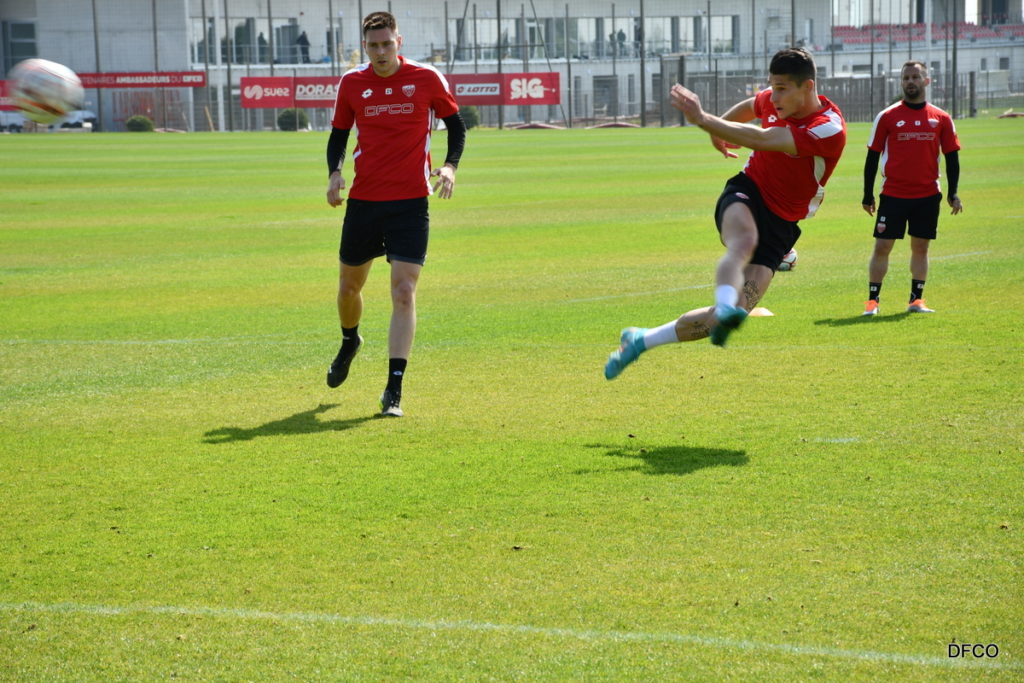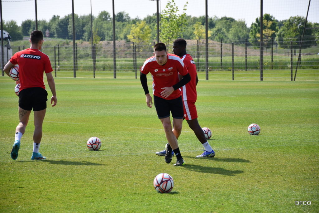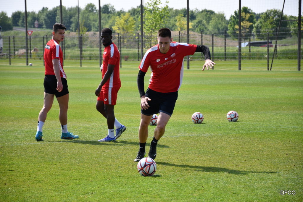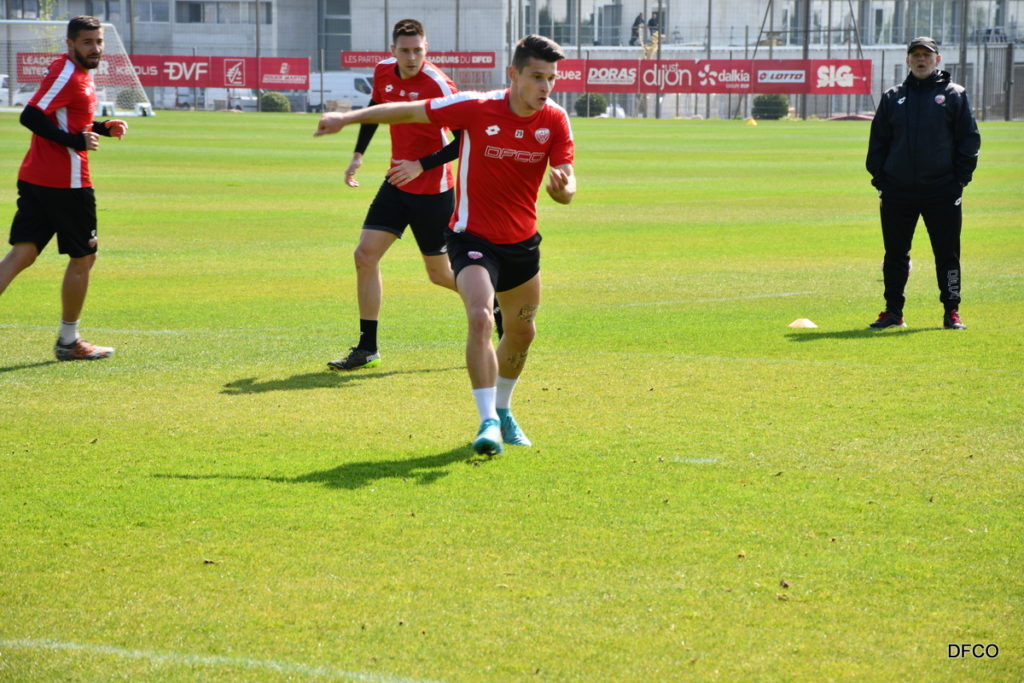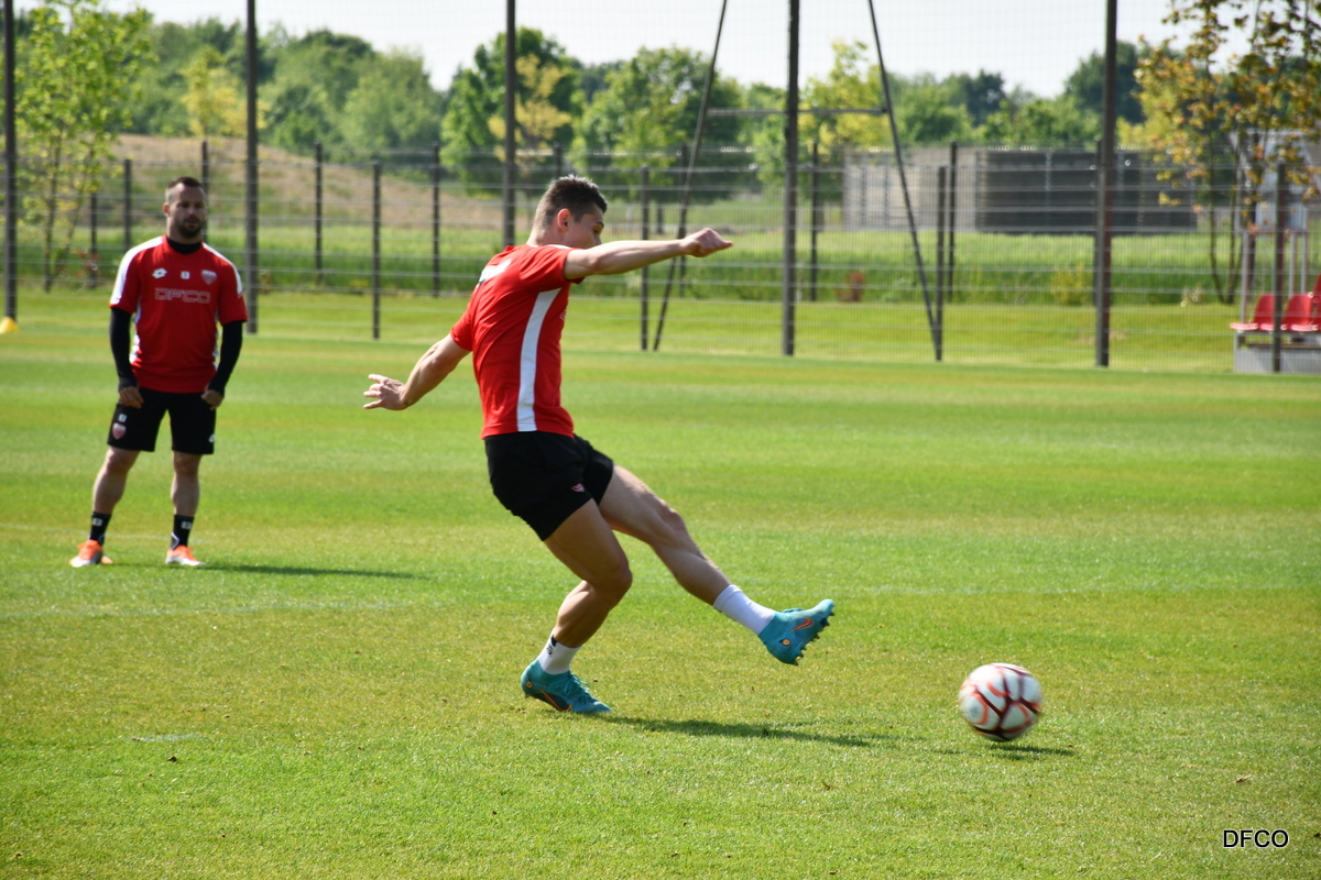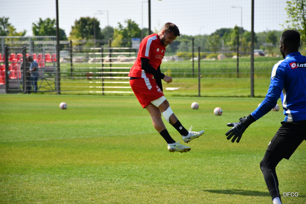 Lucas Deaux a retouché le ballon et enchaîné les tours de terrain ! Le reste du groupe a réalisé des matchs sur espaces réduits et du travail devant le but. A ce petit jeu, c’est le duo Aurélien Scheidler – Alex Dobre qui l’a emporté !