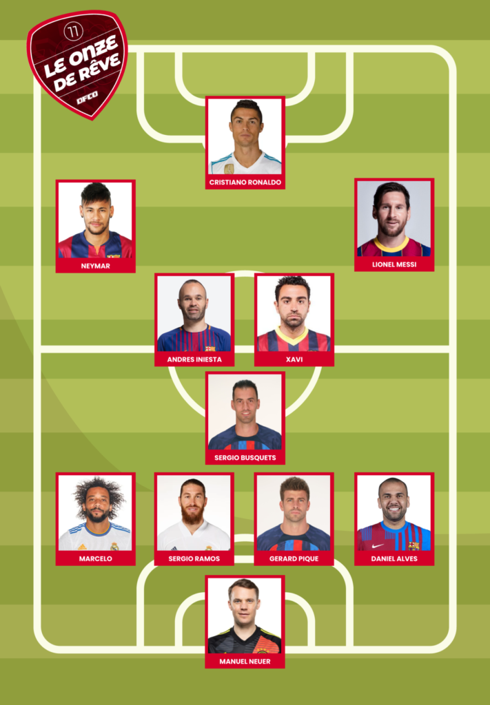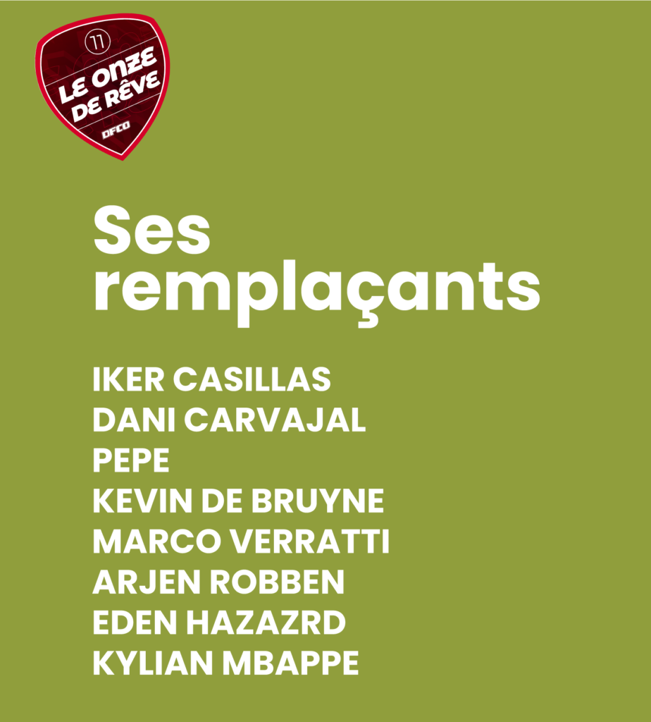 En gardien, je vais rester au Real Madrid avec Iker CASILLAS. En défense, je pars sur Dani CARVAJAL, un top défenseur qui joue encore au Real Madrid. Quand tu lui donnes un ballon, tu sais qu’il va en faire quelque chose. PEPE, je le garde pour fermer la boutique en fin de match. Au milieu, je prends Kévin DE BRUYNE et Marco VERRATTI. De Bruyne, quelle qualité de passe ! Personne ne l’égale. Verratti, ce qui m’impressionne, c’est sa possession de balle. C’est impressionnant, tu ne peux pas lui prendre la balle… En attaque, j’ai choisi Arjen ROBBEN, Eden HAZARD et Kylian MBAPPÉ. Robben, tu disais : « Il va rentrer, il va frapper, il va marquer… » L’équipe en face le savait, mais il marquait à chaque fois ! Eden Hazard, dans son prime, à Chelsea, il était impressionnant. Son style de jeu, c’est aussi ce que j’aime faire, dans ses prises de balle. Kylian Mbappé a déjà prouvé qu’il faisait partie des meilleurs au Monde. C’est le présent et le futur du Real Madrid !