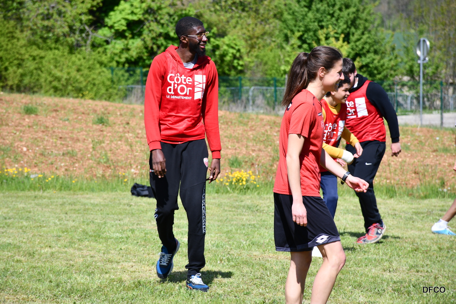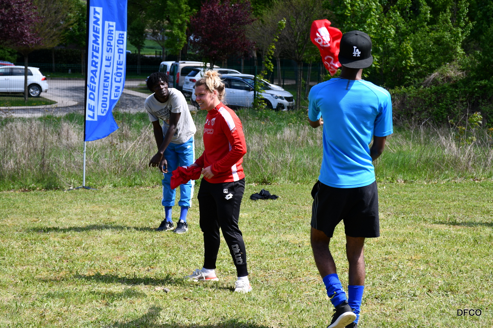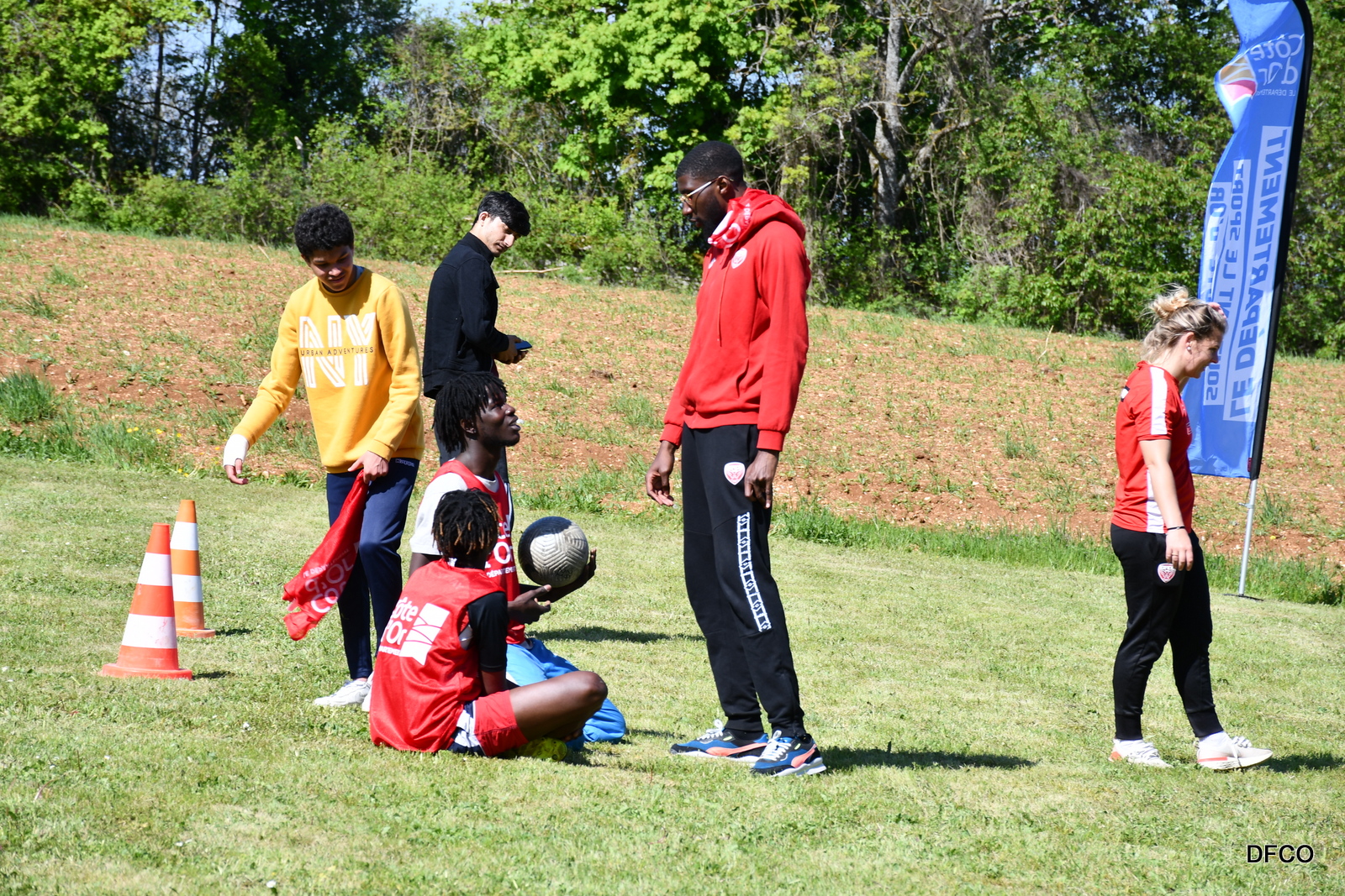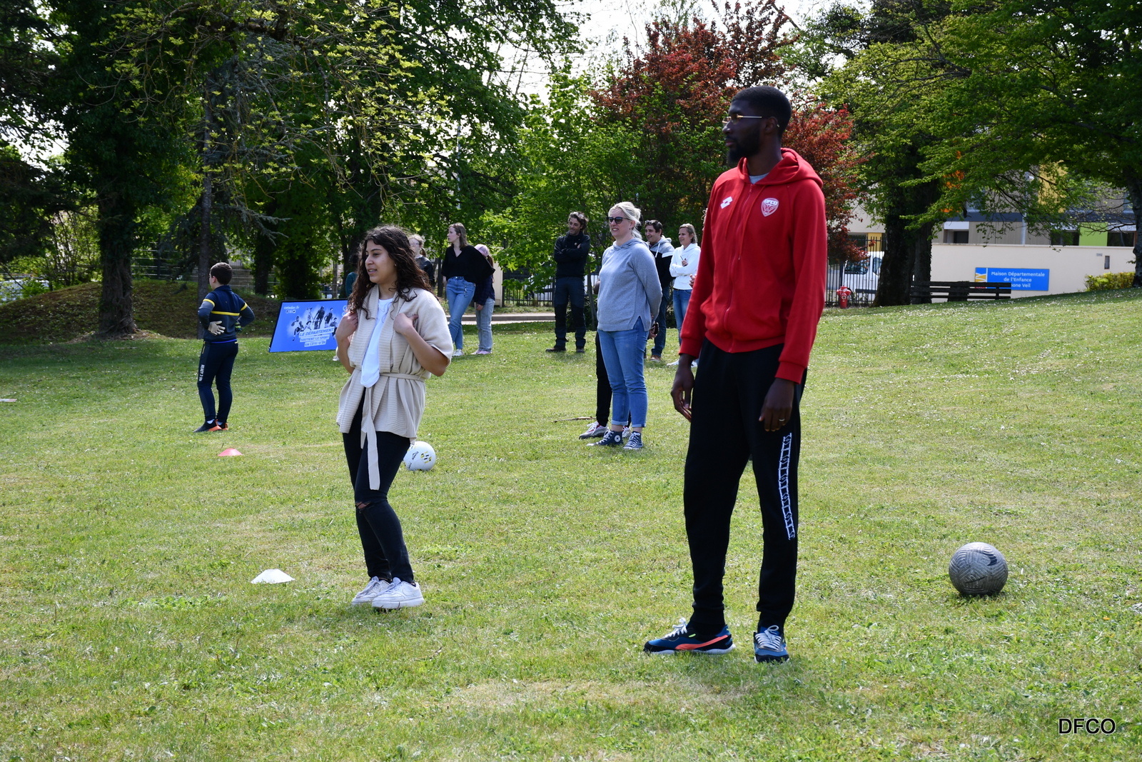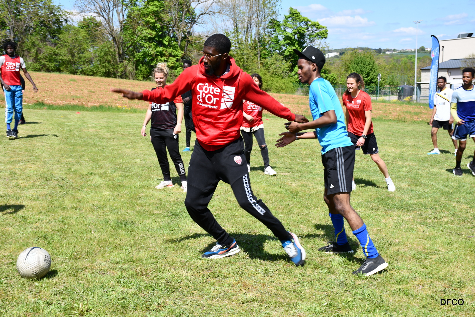 En partenariat avec le conseil départemental de la Côte d’Or, Elody Salaün, Noémie Carage, Coline Stephen, Zargo Touré, Senou Coulibaly et Ahmad Ngouyamsa, se sont rendus à la maison départementale de l’enfance d’Ahuy. Un bon moment d’échange autour du ballon rond.