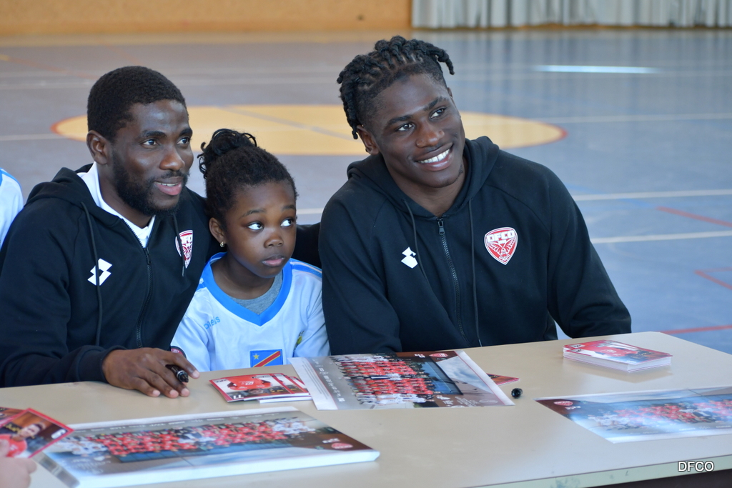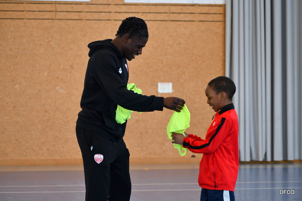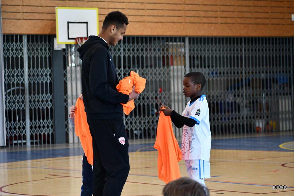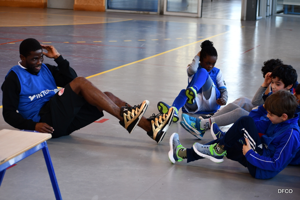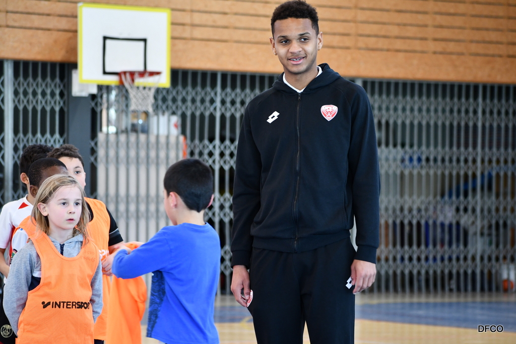 Loum Tchaouna, Mattéo Ahlinvi, Roger Assalé se sont rendus mercredi après-midi au gymnase Jean Marion à la rencontre des enfants participants au dispositif Dijon Sport Découverte proposé par la ville de Dijon.