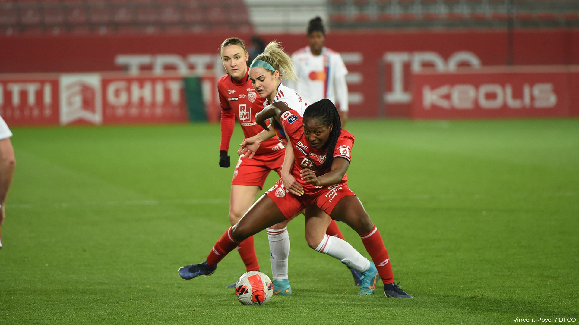 DFCO : Durand – Salaün (Girardot, 43′), Carage (c), Cuynet, Soleilhet – Declercq (Barbance, 85′), Fercocq, Dear (Tyryshkina, 85′) – Barrier, Sangaré (Lavaud, 85′), Sunday (Tarrieu, 70′).