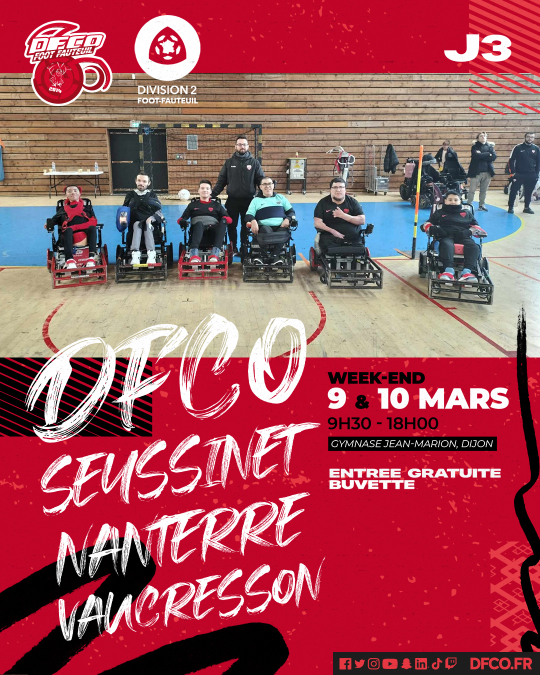Durant deux jours, quatre équipes s’affronteront : le DFCO Foot Fauteuil, l’AC Seyssinet Football, Nanterre et Vaucresson. Les matchs durent deux périodes de 20 minutes. L’objectif étant pour nos dijonnais de prendre leur distance avec la zone de relégation face à des concurrents directs.