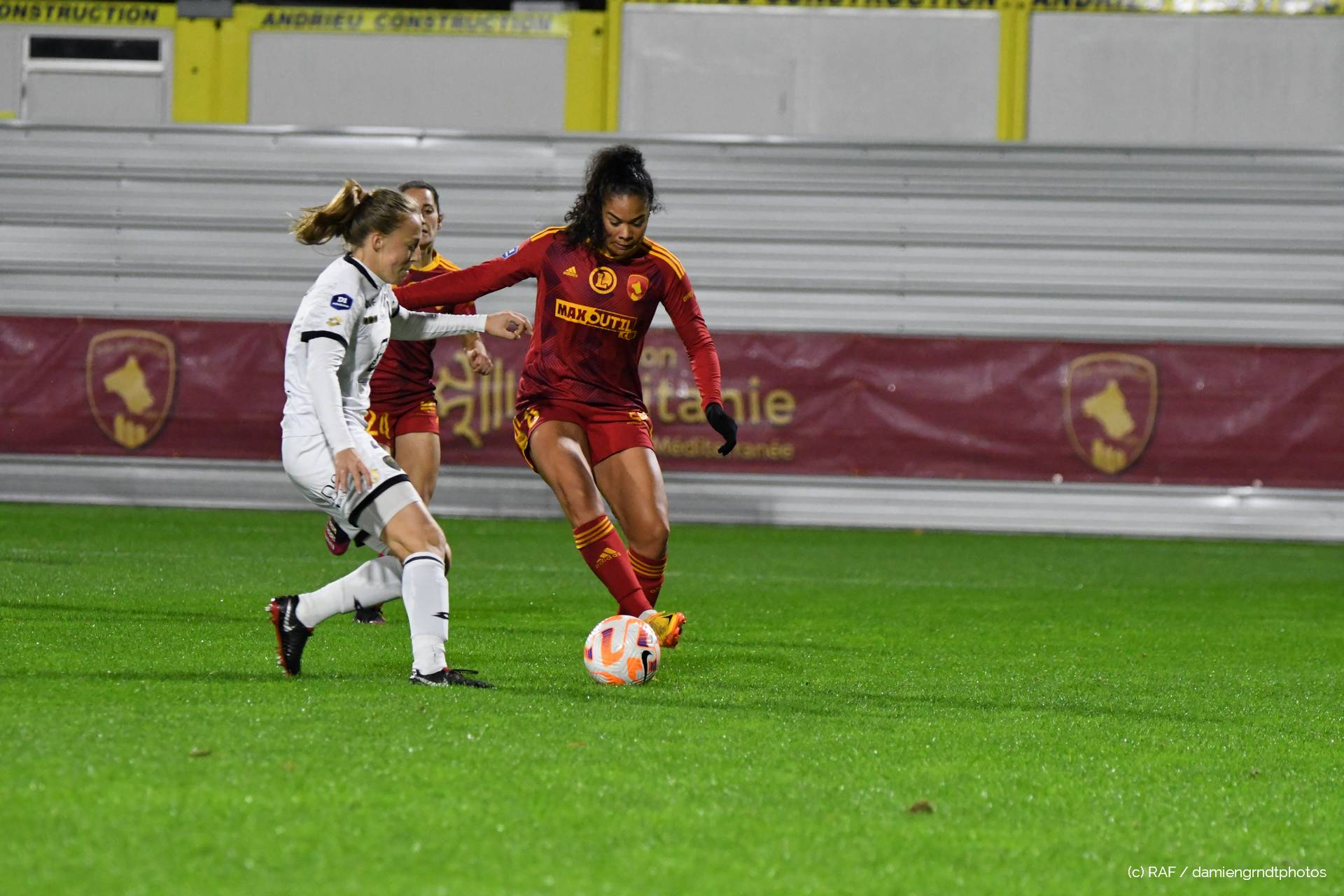 Le rythme retombe ensuite, les joueuses de Christophe Forest mettent plus le pied sur le ballon. Rose Lavaud (35’) puis Morgane Martins (41’) tentent leur chance de loin, mais elles ne parviennent pas à tromper la défense du RAF. La formation ruthénoise se fait d’ailleurs plus pressante avant le retour aux vestiaires. Elles vont toucher par deux fois la barre transversale dijonnaise. Sur la première, une frappe de Lamontagne depuis l’intérieur de la surface, c’est Lisa Lichtfus qui dévie le ballon sur son montant d’un réflexe salvateur ! (42’) Elle semblait ensuite bien placée dans les arrêts de jeu sur un lourd coup-franc de Champagnac, consécutif à une main discutable de Kate Tyryshkina, mais c’est bel et bien la barre qui renvoie la tentative de la défenseure ruthénoise (45’+2).