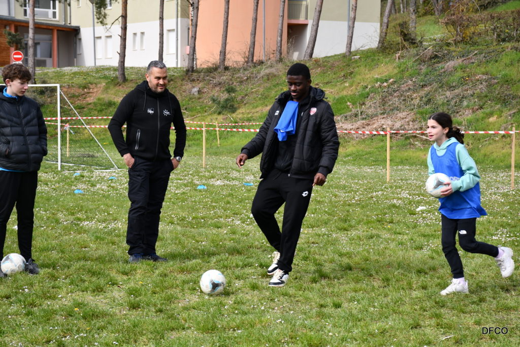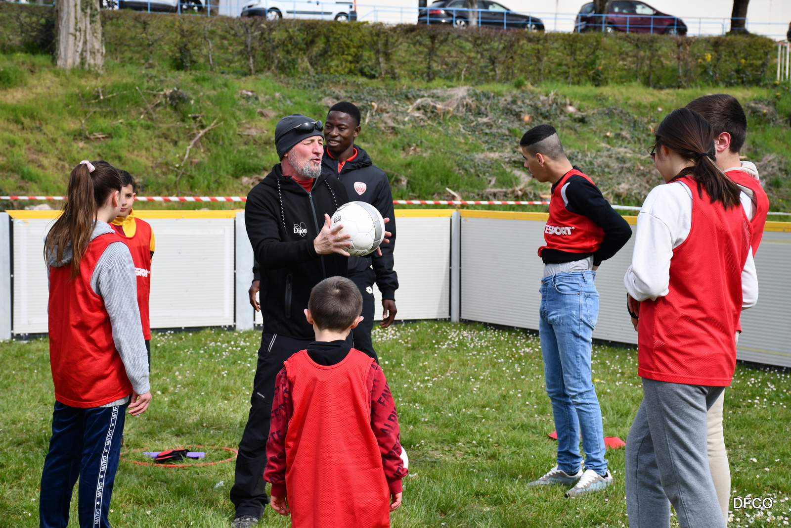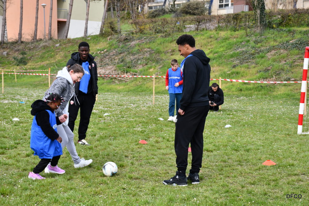 Ce jeudi, c’était le football qui était à l’honneur. Pour l’occasion, Marley Aké, Idrissa Camara et Ahmad Ngouyamsa se sont rendus ce matin sur le site pour participer à la journée. L’après-midi, c’était au tour de Morgane Martins, Ekaterina Tyryshkina et Alicia Soleilhet de représenter le DFCO sur la partie féminine et d’échanger avec les enfants présents.