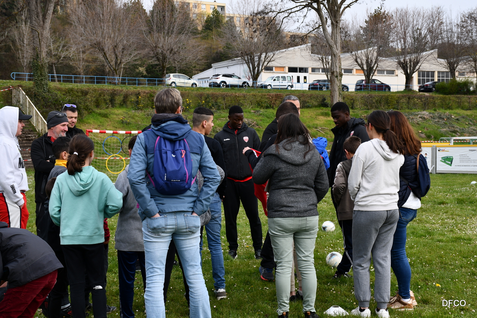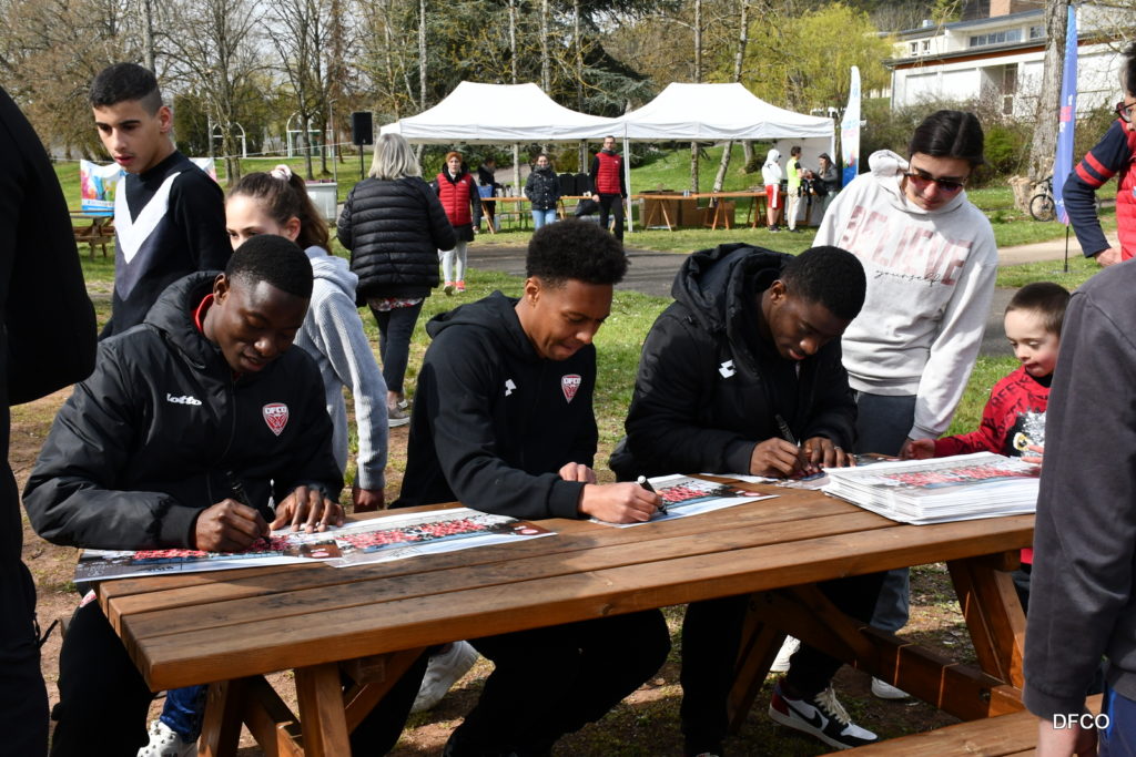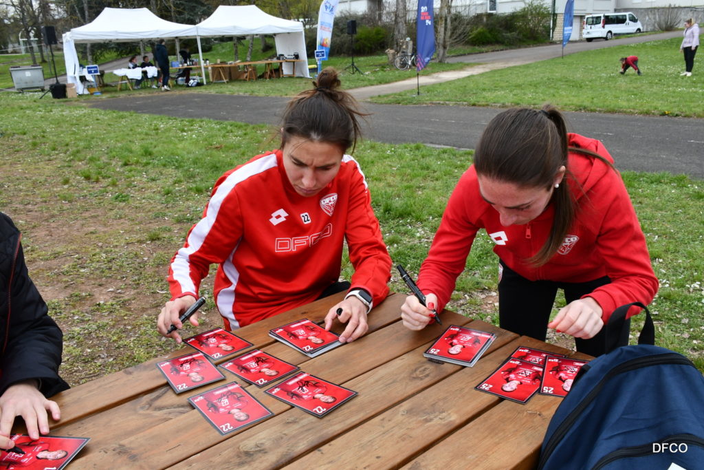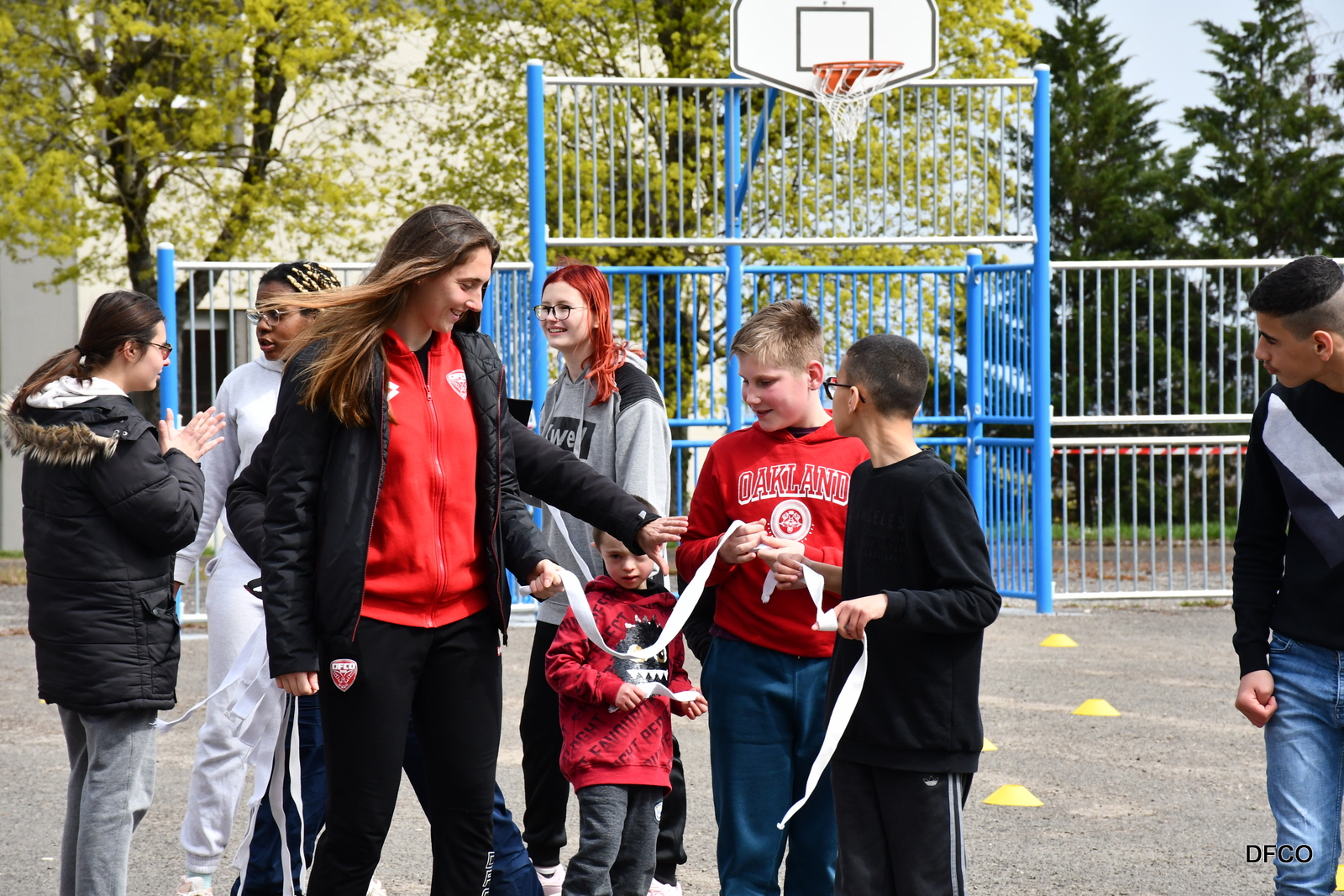 Ce jeudi, c’était le football qui était à l’honneur. Pour l’occasion, Marley Aké, Idrissa Camara et Ahmad Ngouyamsa se sont rendus ce matin sur le site pour participer à la journée. L’après-midi, c’était au tour de Morgane Martins, Ekaterina Tyryshkina et Alicia Soleilhet de représenter le DFCO sur la partie féminine et d’échanger avec les enfants présents.