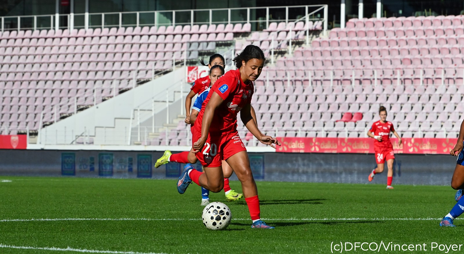 Noémie Carage (DFCO) : « On ne pouvait pas imaginer une entame plus catastrophique avec un but pris et un carton rouge. Après une première période compliquée, on s’est dit qu’ il ne fallait pas baisser la tête et qu’il fallait réagir.Je pense que l’on a montré des choses intéréssantes lors du second acte. On n’a pas lâché et je suis fière du comportement de mes coéquipières durant ces dernières quarante-cinq minutes. »
