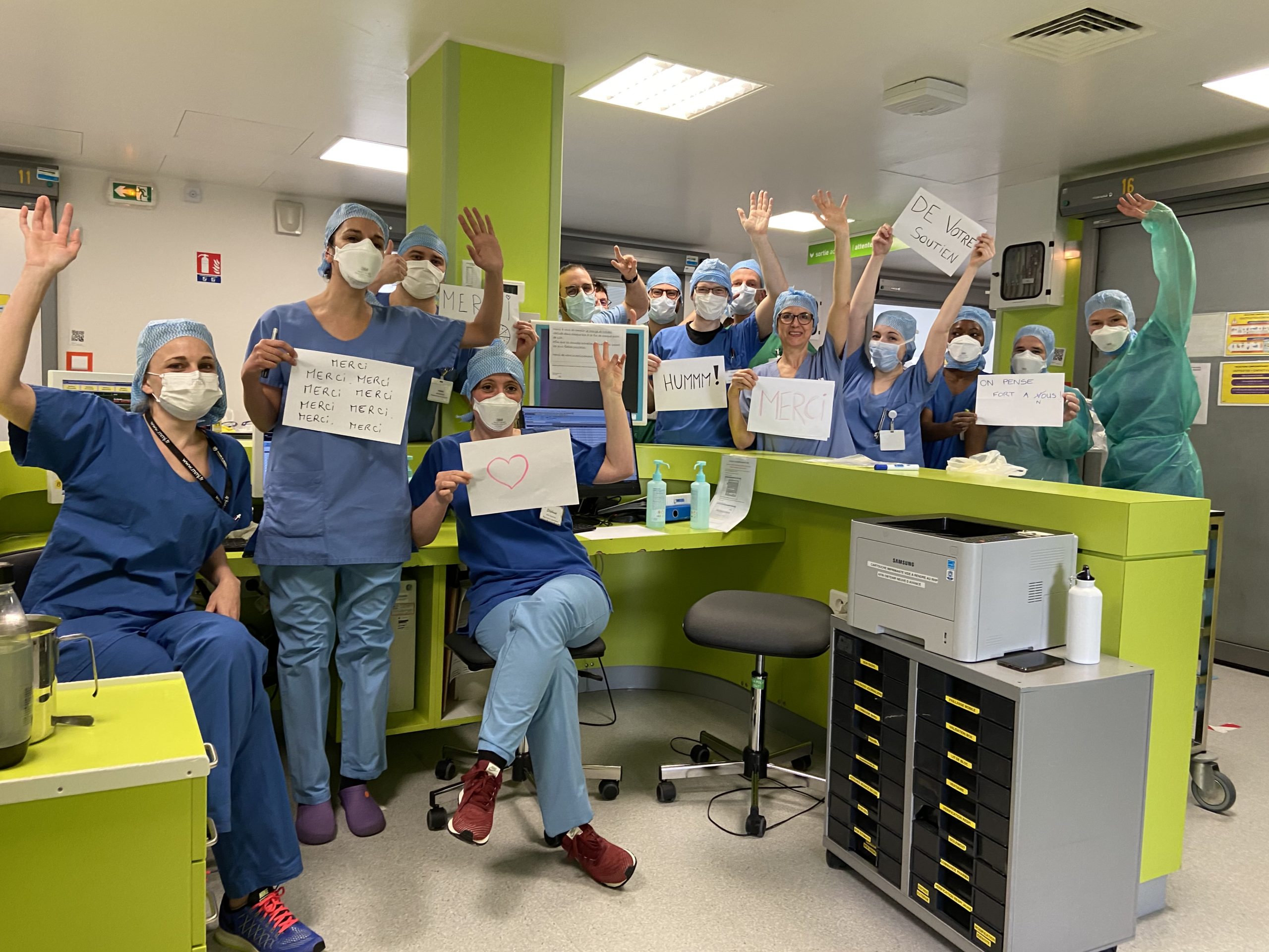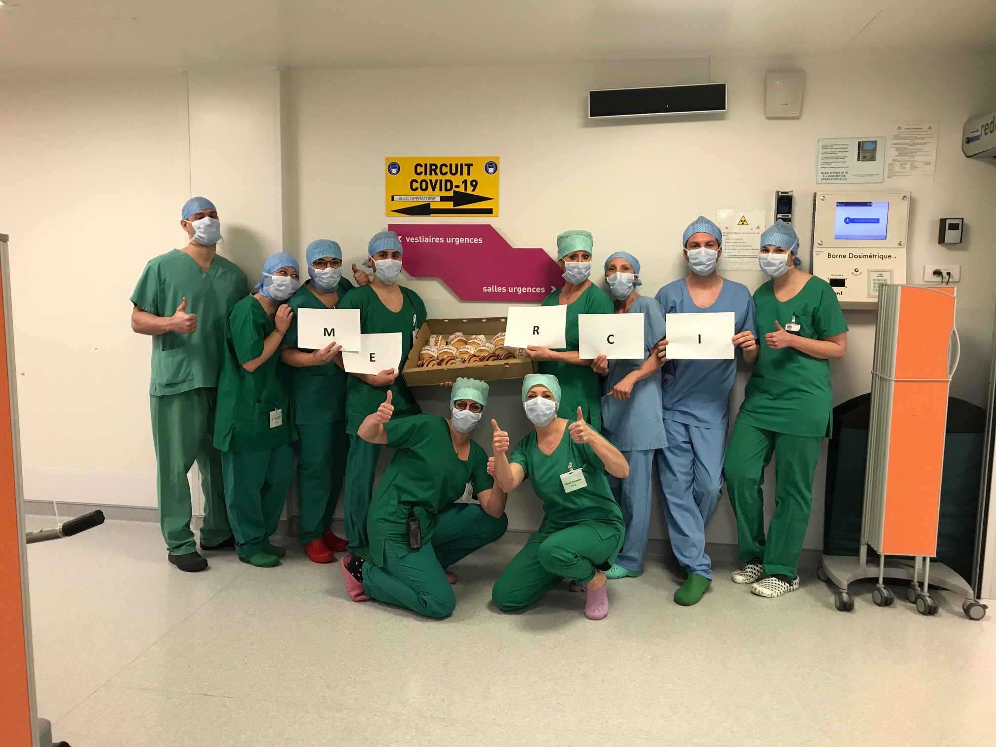 En partenariat avec la boulangerie « Du pain pour demain », le DFCO avait aussi fait le choix d’offrir des viennoiseries aux personnels soignants. Au total, 3600 croissants et pains au chocolat personnalisés ont été distribués dans les services, à l’heure du petit déjeuner, pendant deux semaines.