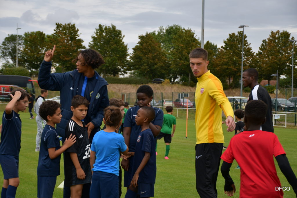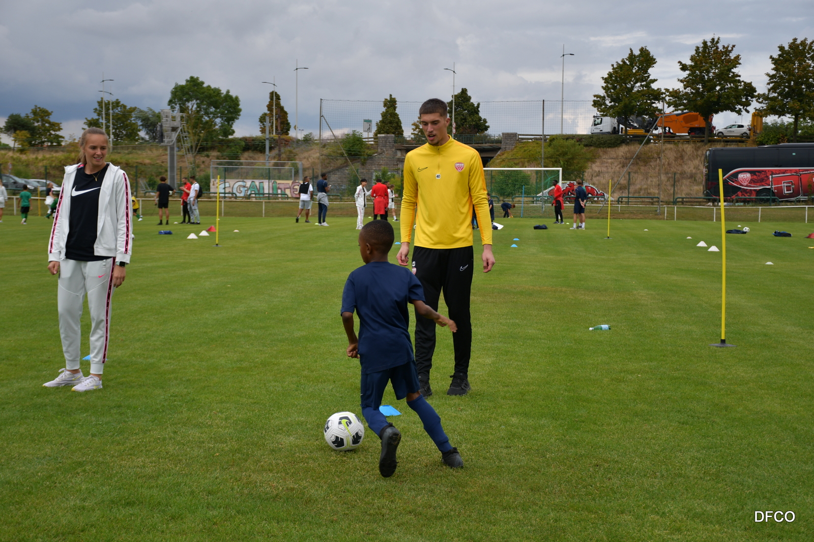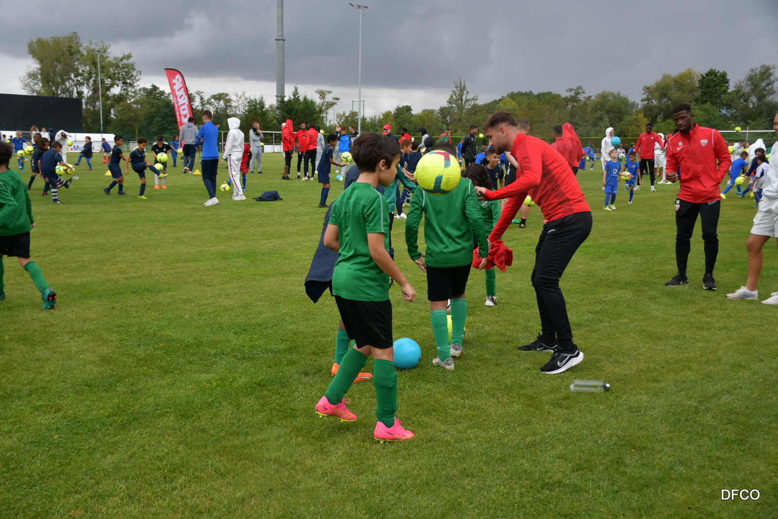 Après le traditionnel accueil des joueuses et joueurs professionnel, les enfants ont fait connaissance avec leurs parrains et marraines du jour autour d’ateliers organisés par les éducateurs du DFCO.