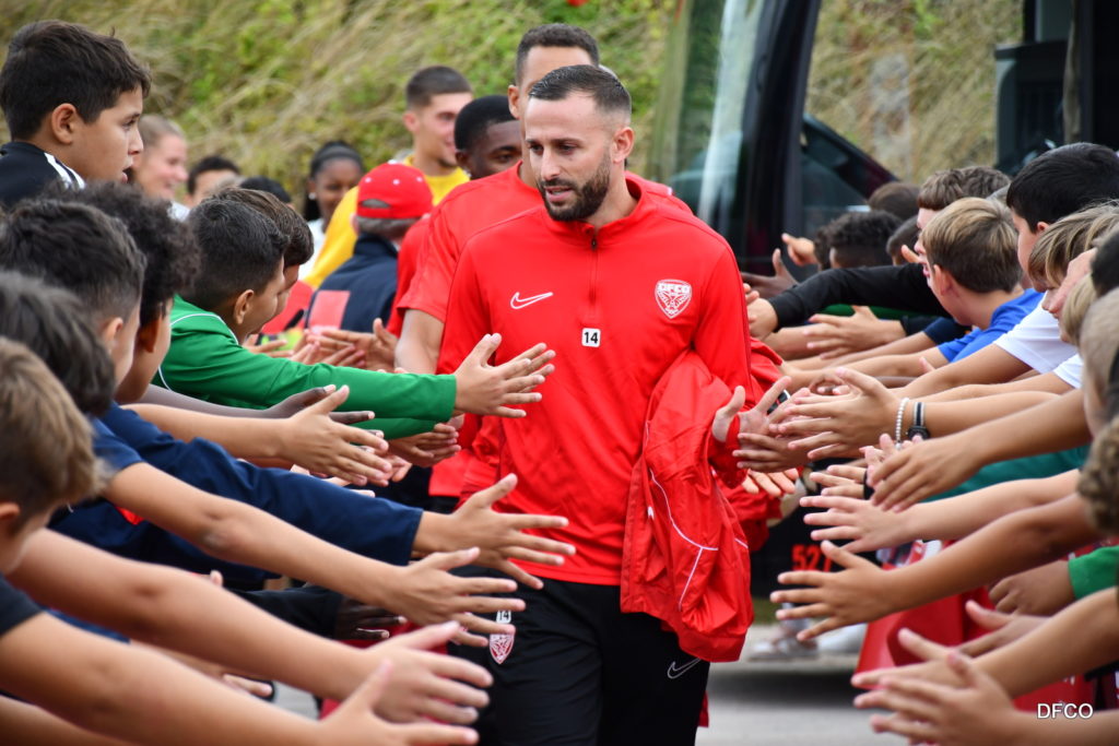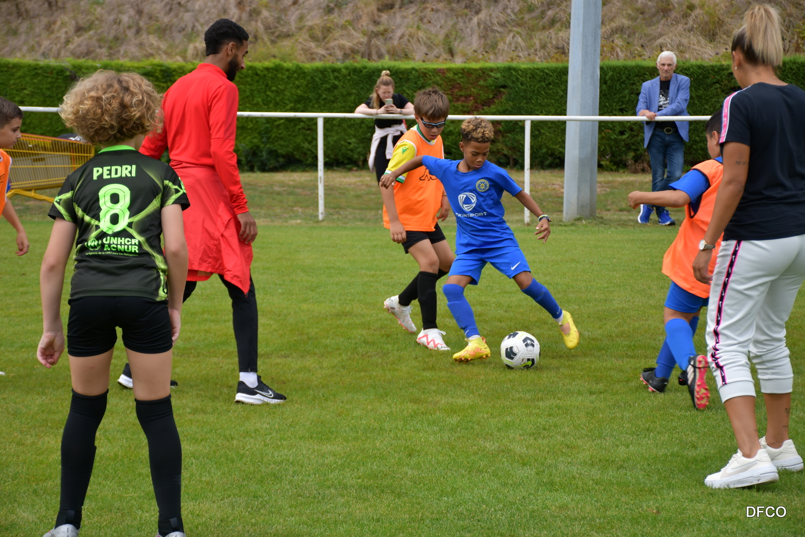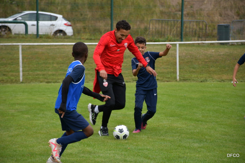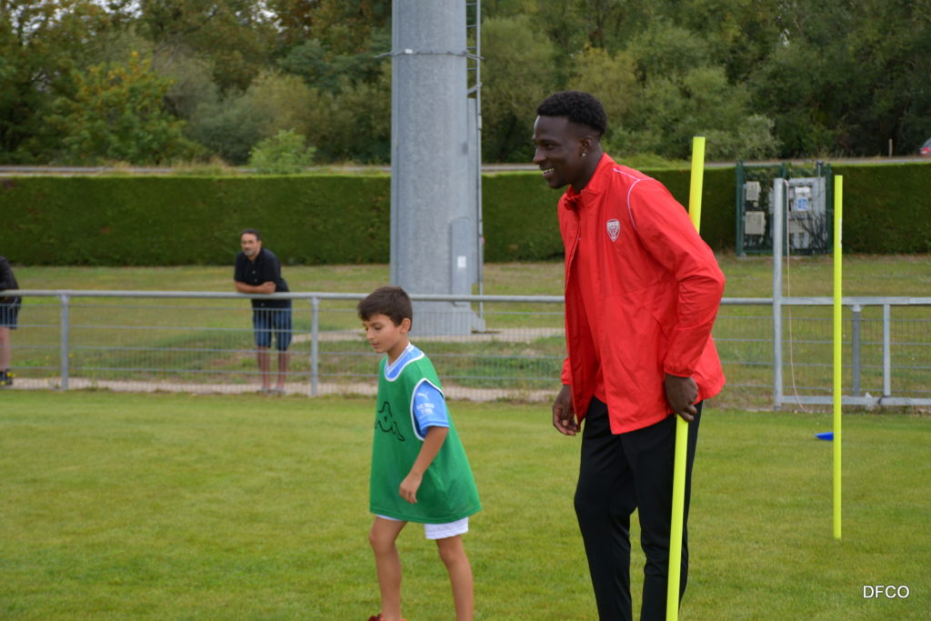 Après le traditionnel accueil des joueuses et joueurs professionnel, les enfants ont fait connaissance avec leurs parrains et marraines du jour autour d’ateliers organisés par les éducateurs du DFCO.
