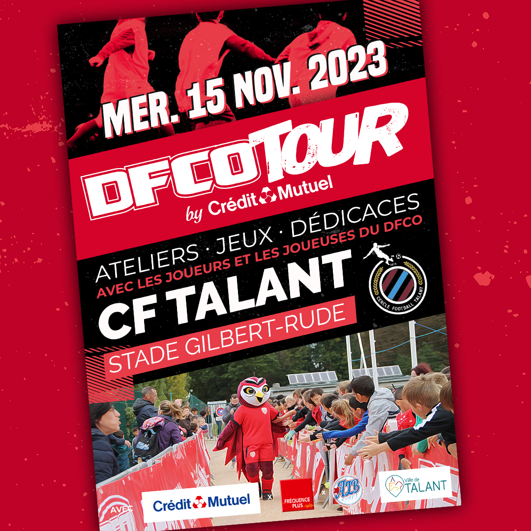 Après avoir rendu visite au club de Longvic en septembre dernier, le DFCO Tour by Crédit Mutuel fera escale du côté du stade Gilbert-Rude à Talant le mercredi 15 novembre !