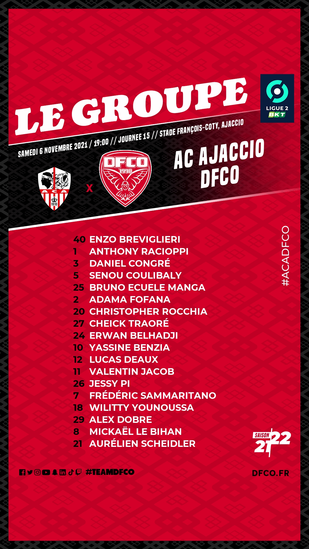 Le groupe dijonnais contre l'AC Ajaccio