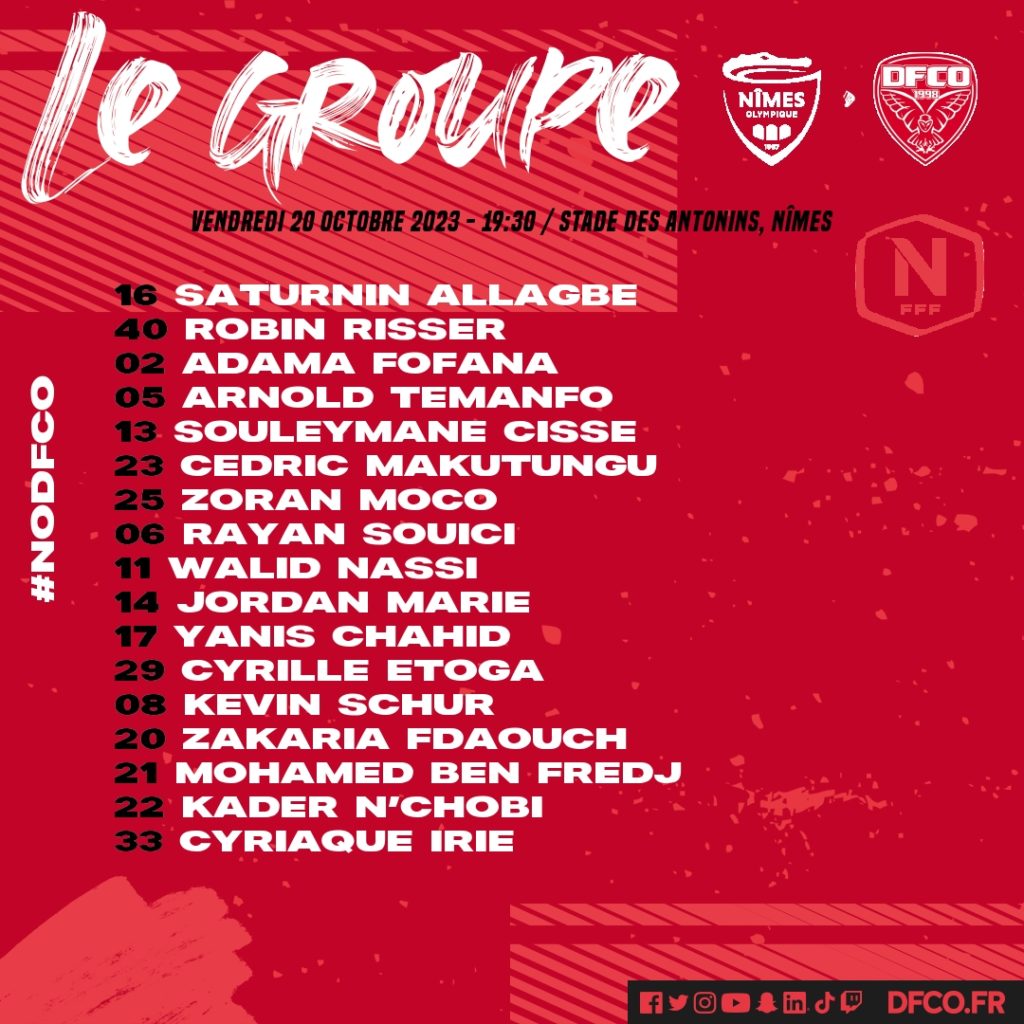 Pour effectuer le déplacement sur la pelouse du Nîmes Olympique ce vendredi (19h30) pour le compte de la 11e journée de National, Benoît Tavenot et son staff ont convoqué un groupe de 17 joueurs.