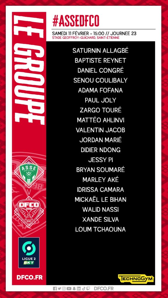 Pour effectuer le déplacement à Saint-Étienne ce samedi 11 février (15h00 / 23e journée de Ligue 2 BKT), 19 joueurs ont été convoqués par Omar Daf et son staff.