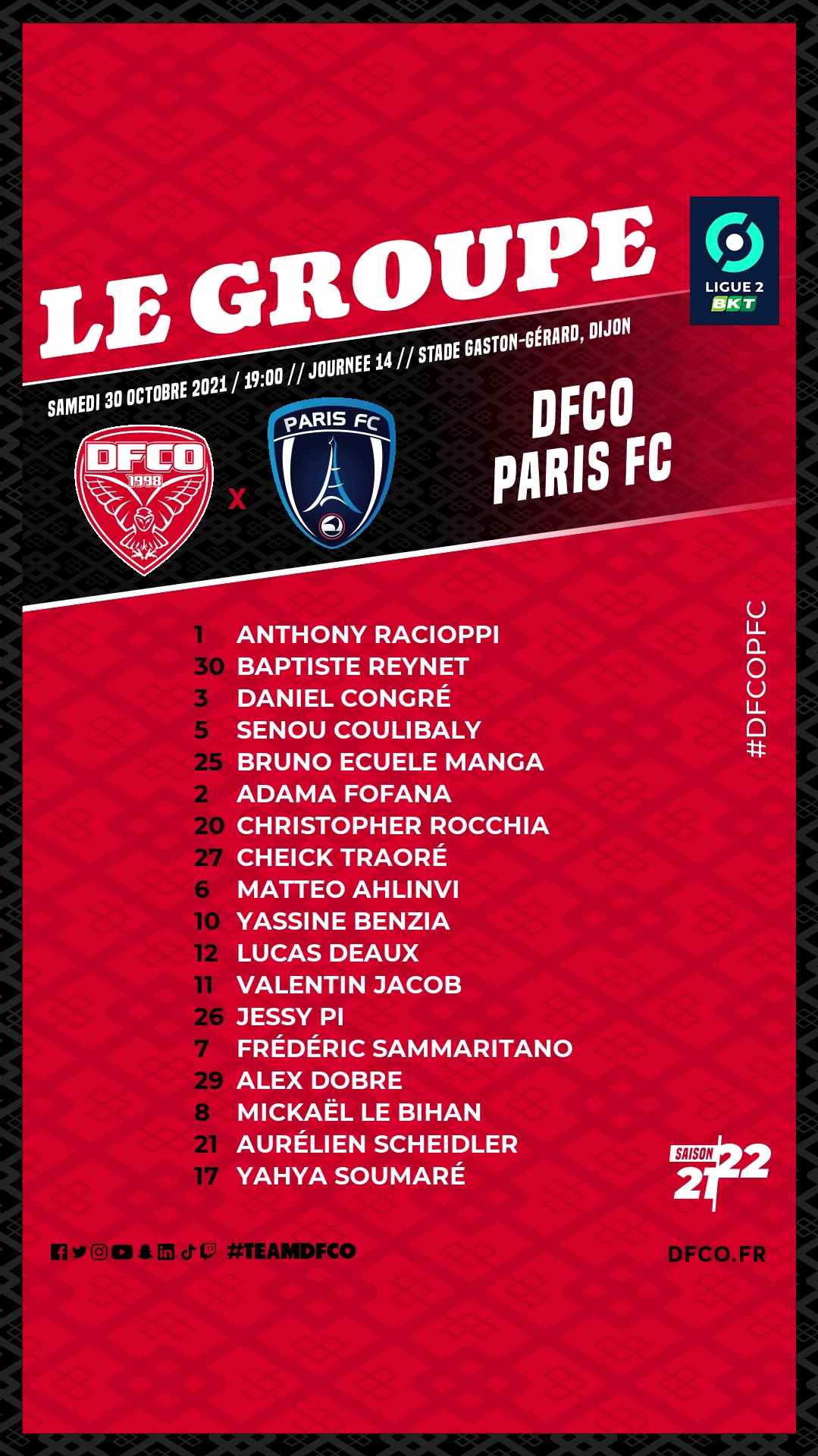 Patrice Garande et son staff ont convoqué un groupe de 18 joueurs pour la réception du Paris FC (14e journée de Ligue 2 BKT) ce samedi 30 octobre (19h00).