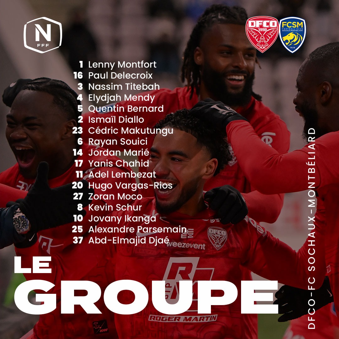 Baptiste Ridira et son staff ont communiqué un groupe de 17 joueurs pour la réception de Sochaux ce vendredi 13 décembre (15e journée / 19h30).