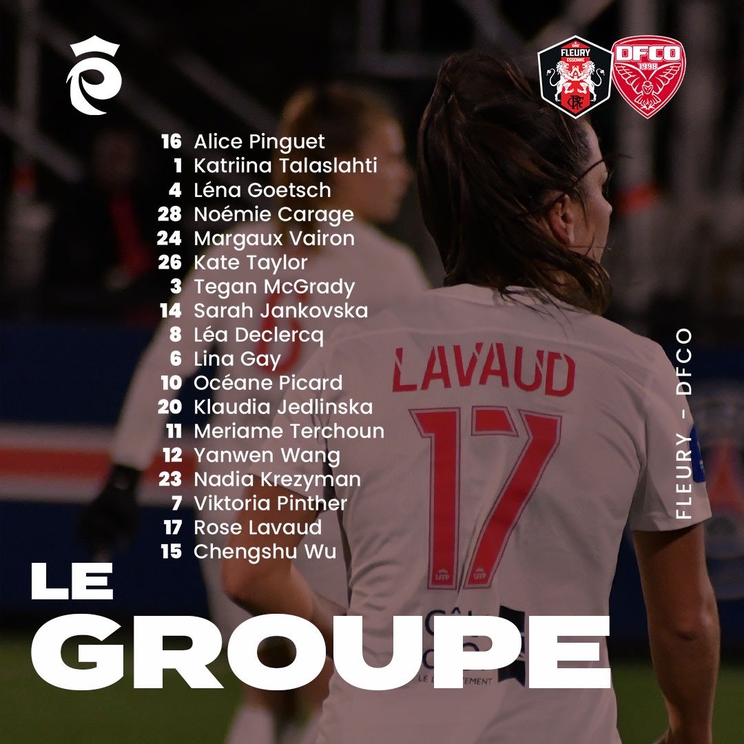 Pour la 17e journée de l’Arkema Première Ligue, le DFCO se déplace à Fleury ce samedi 15 mars (17h00). Découvrez le groupe concocté par Sébastien Joseph et son staff.