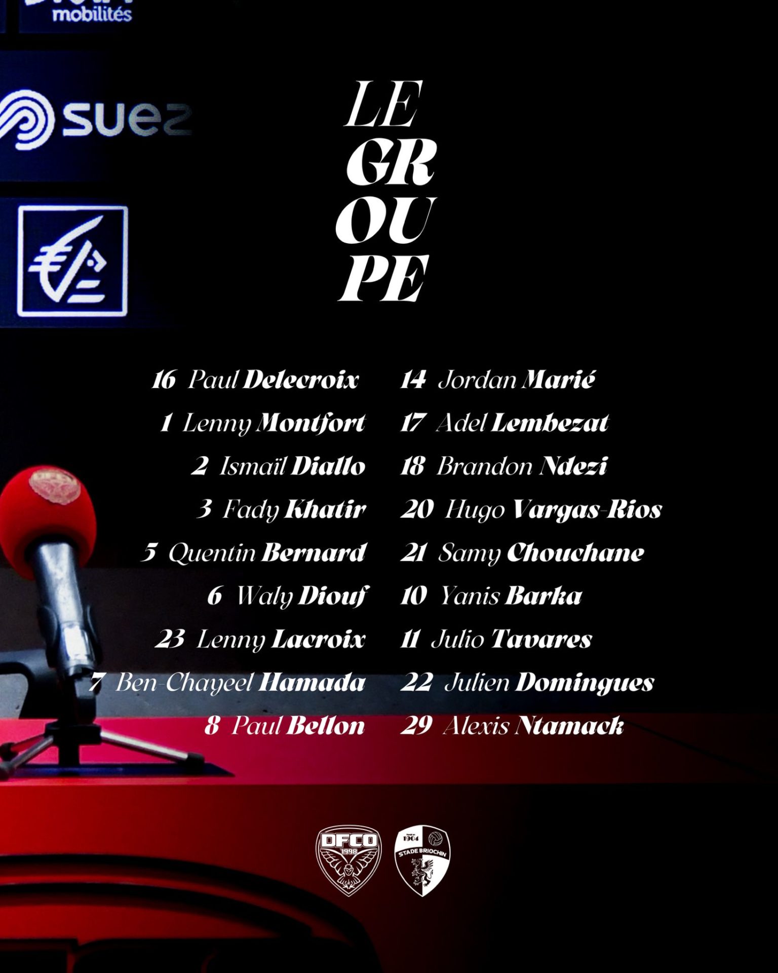 Le staff dijonnais a convoqué un groupe de 18 joueurs pour la réception du Stade Briochin ce vendredi soir à 19h30.