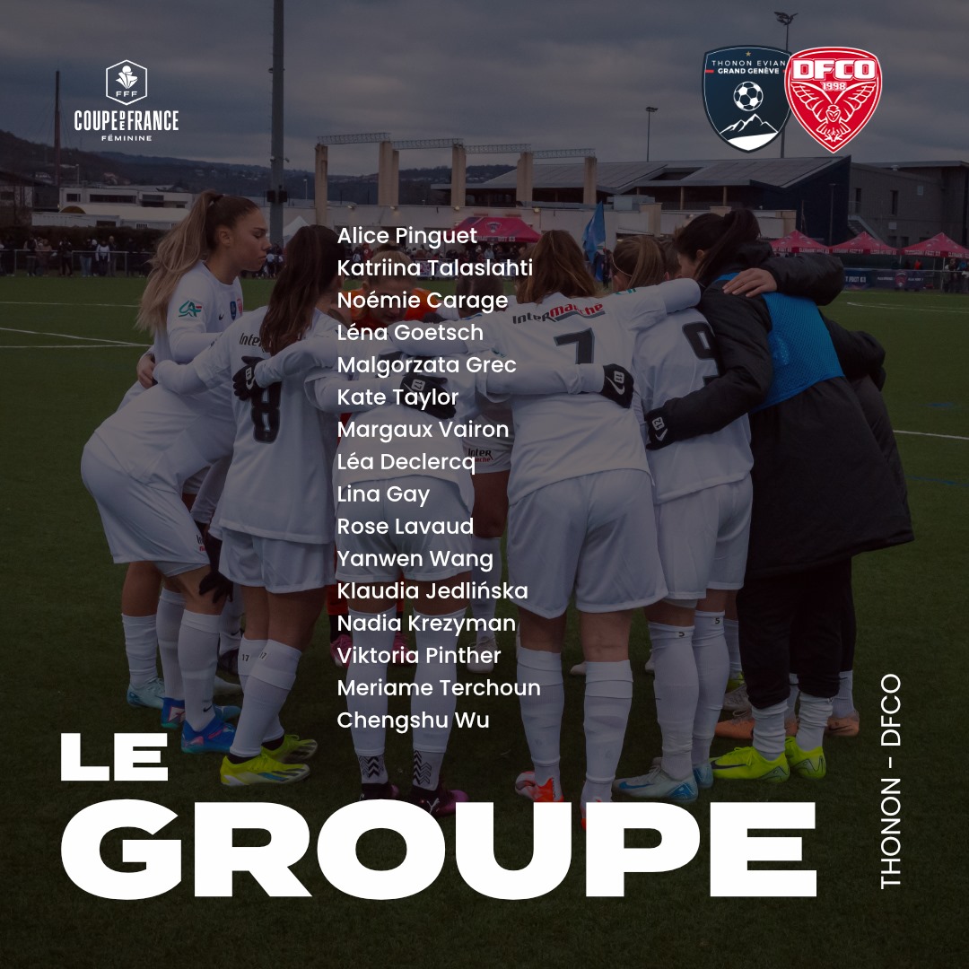 Sébastien Joseph et son staff ont concocté un groupe de 16 joueuses pour le déplacement à Grand Thonon Evian Genève dans le cadre des 8 èmes de finale de la Coupe de France.
