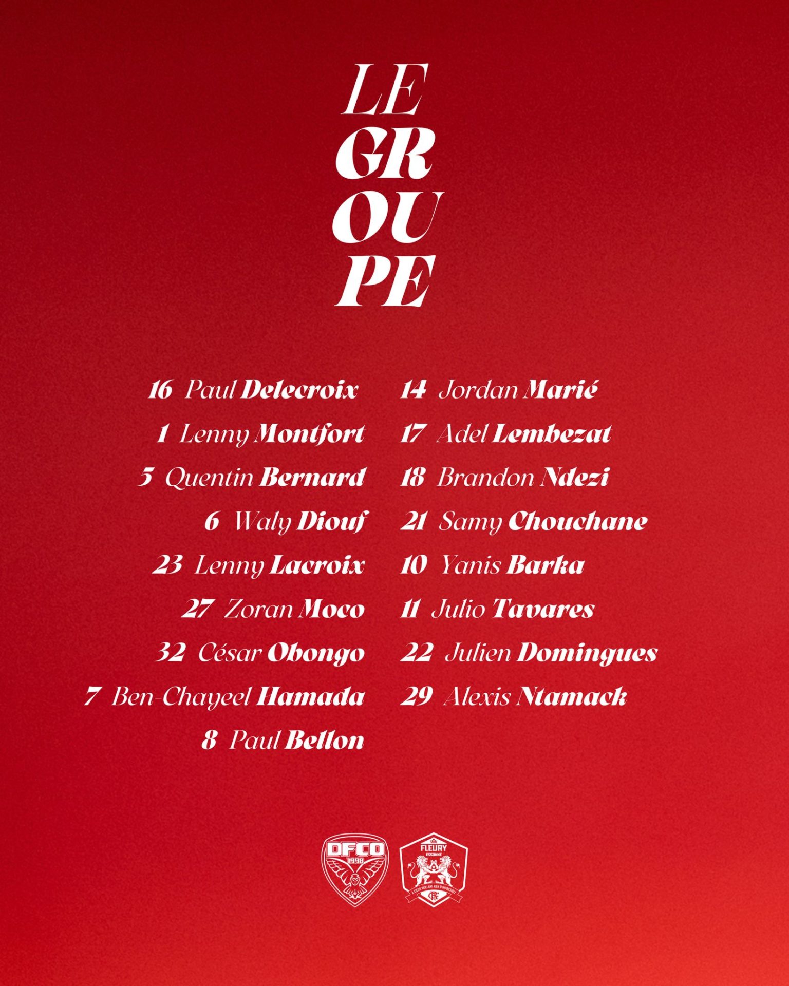 Absent depuis plusieurs semaines, Paul Bellon effectue son retour dans le groupe. Ismaïl Diallo, Michaël Barreto, Fady Khatir et Hugo Vargas-Rios sont touchés et absents.