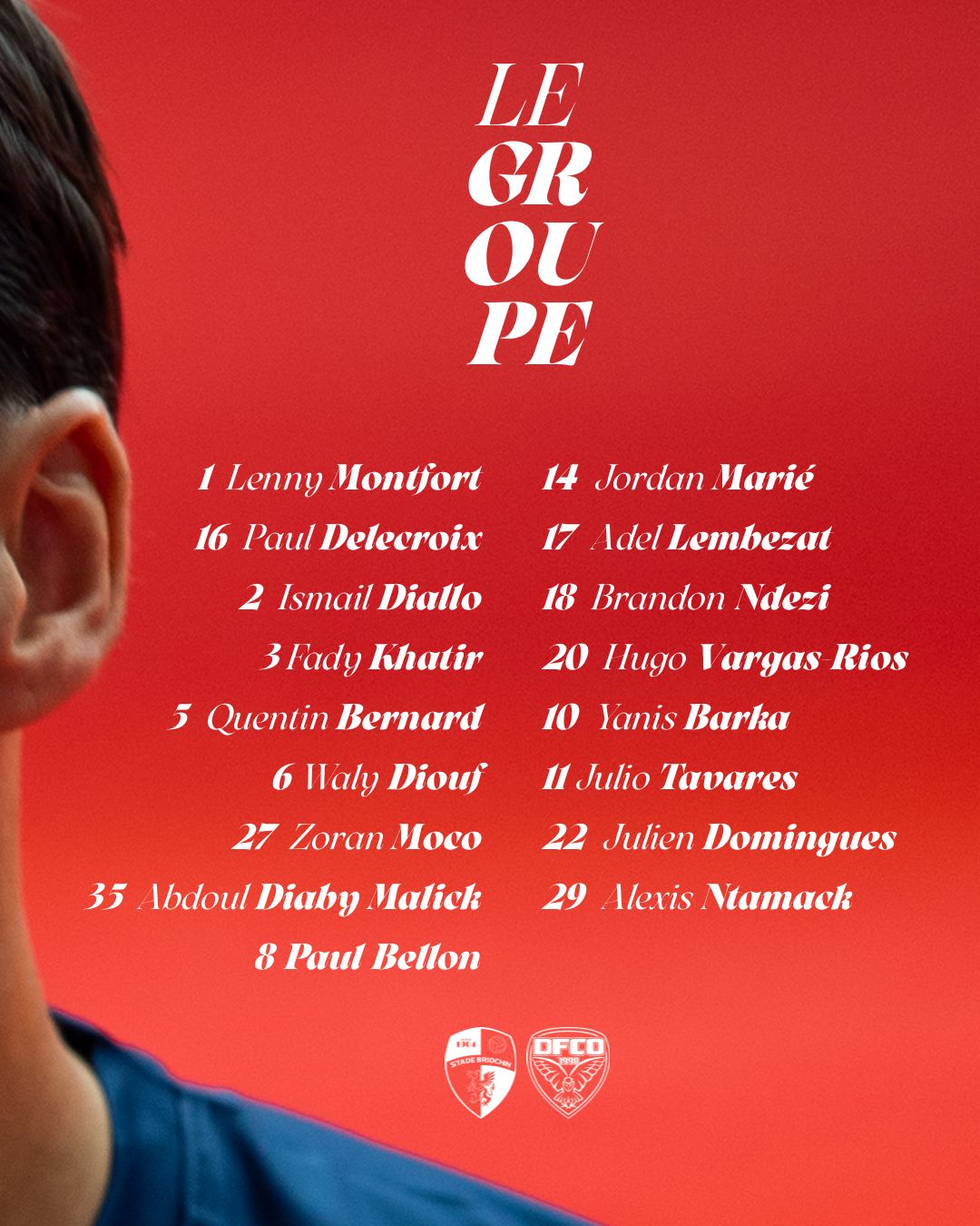 Baptiste Ridira et son staff ont convoqué un groupe de 17 joueurs pour le déplacement à Saint-Brieuc ce vendredi à 19h30.