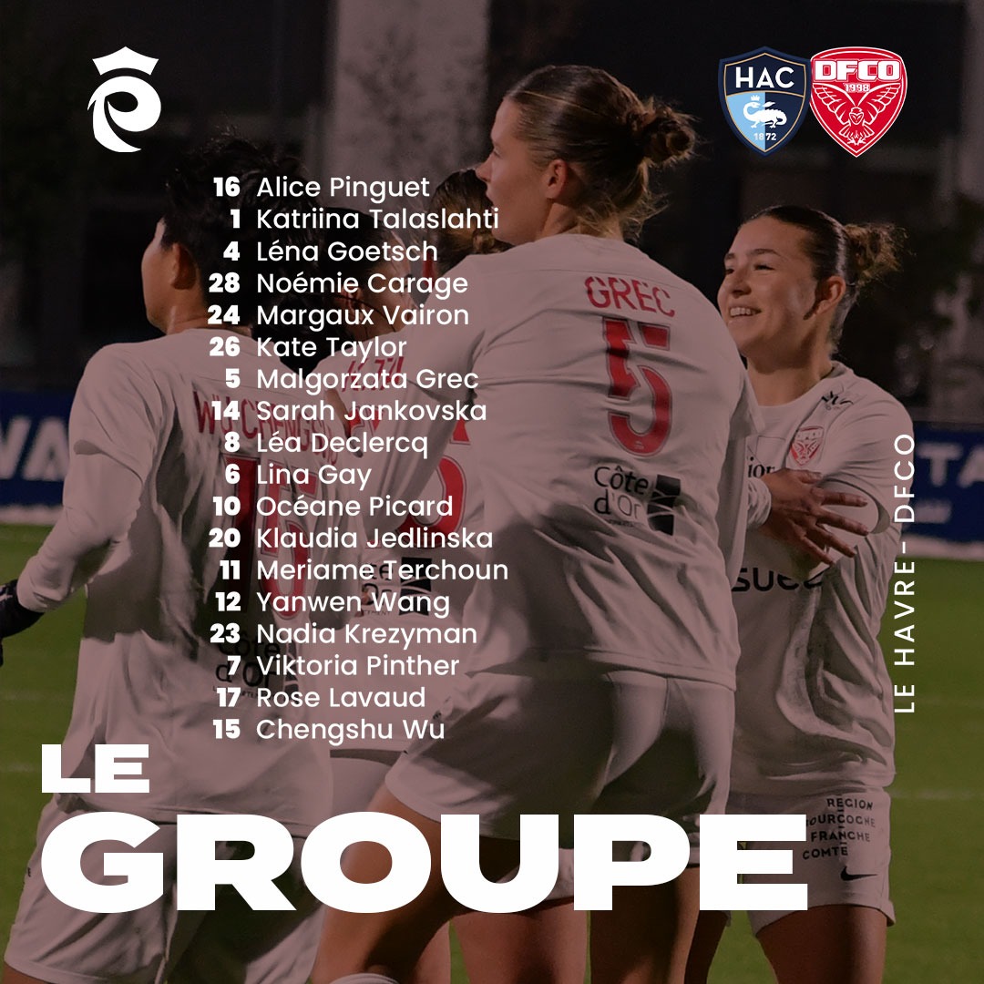 Le DFCO se déplace au Havre pour la 18e journée d’Arkema Première Ligue ce samedi 22 mars (17h00). Découvrez le groupe concocté par Sébastien Joseph et son staff.