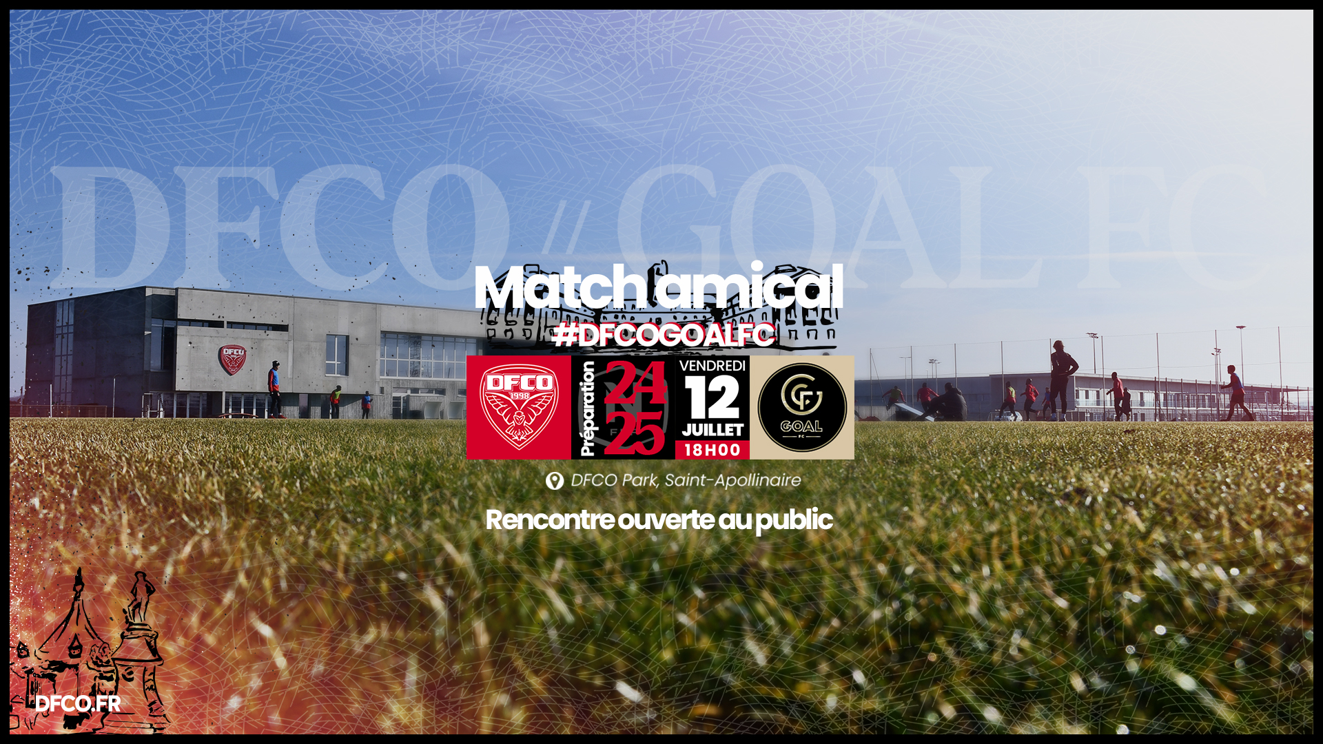 Le DFCO entamera sa série de matchs amicaux (consulter le programme de préparation ici) ce vendredi 12 juillet (coup d’envoi 18h) contre GOAL FC, au centre d’entraînement de Saint-Apollinaire (DFCO PARK). Cette rencontre sera ouverte au public.