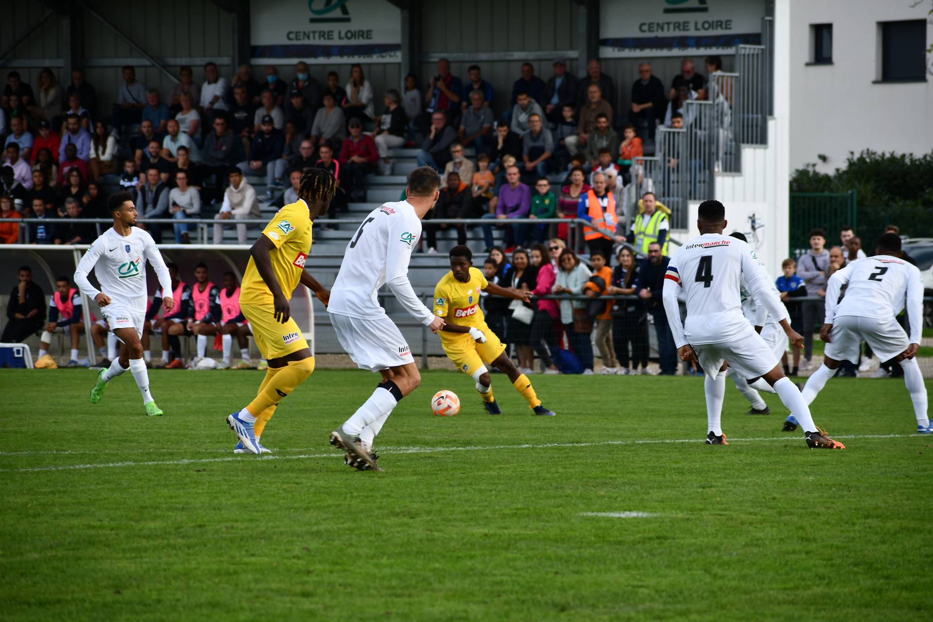 Le début de match est plus équilibré qu’on aurait pu le croire, malgré une première percée et un ballon au-dessus de la barre d’Adama Fofana (1’). Les Jaunes du DFCO sont cependant bien dans leur match et sur un débordement côté gauche, Alex Dobre trouve Loum Tchaouna dans l’axe. L’attaquant prêté par le Stade Rennais trompe Claveau de l’intérieur du pied ! (0-1, 11’) Le DFCO gère bien son avantage, mais il faut cependant se méfier d’une formation loirétaine prompte à se projeter vers l’avant. Il faut ainsi une bonne intervention de Saturnin Allagbé au sol pour repousser un centre-tir de Galas (21’)