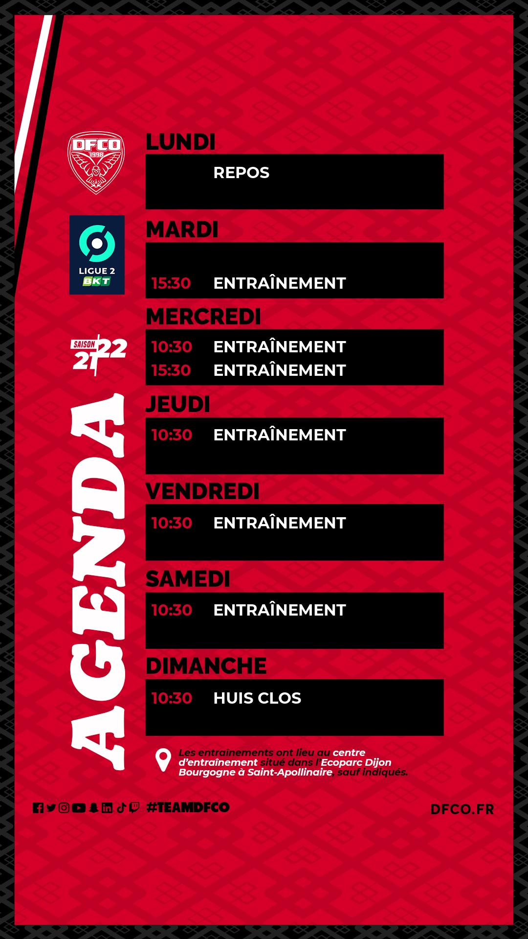7 séances d'entraînement collectives sont au programme. La séance de dimanche sera à huis clos.