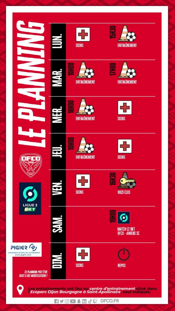 Le planning avant DFCO – Amiens