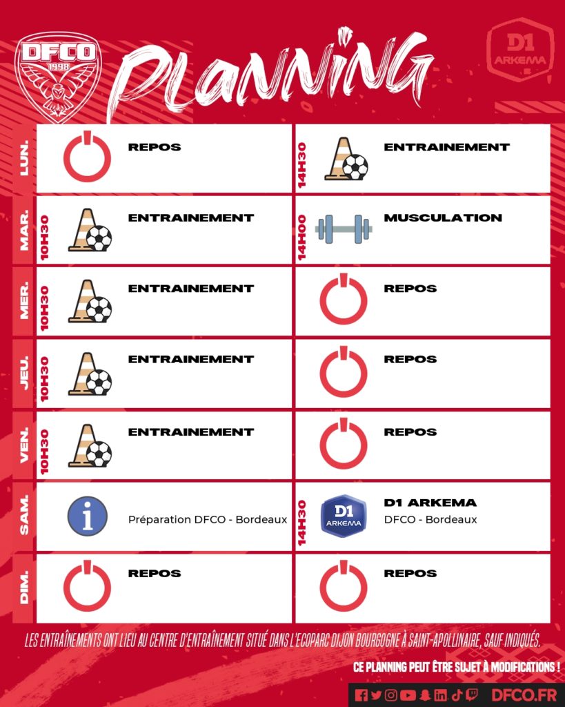Le planning avant DFCO – Bordeaux (D1)