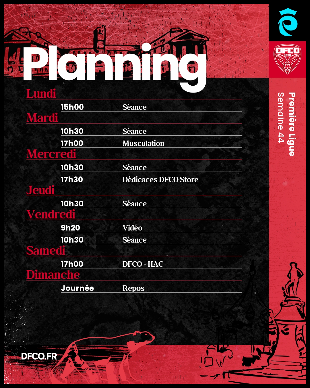 Le planning avant DFCO – Le Havre