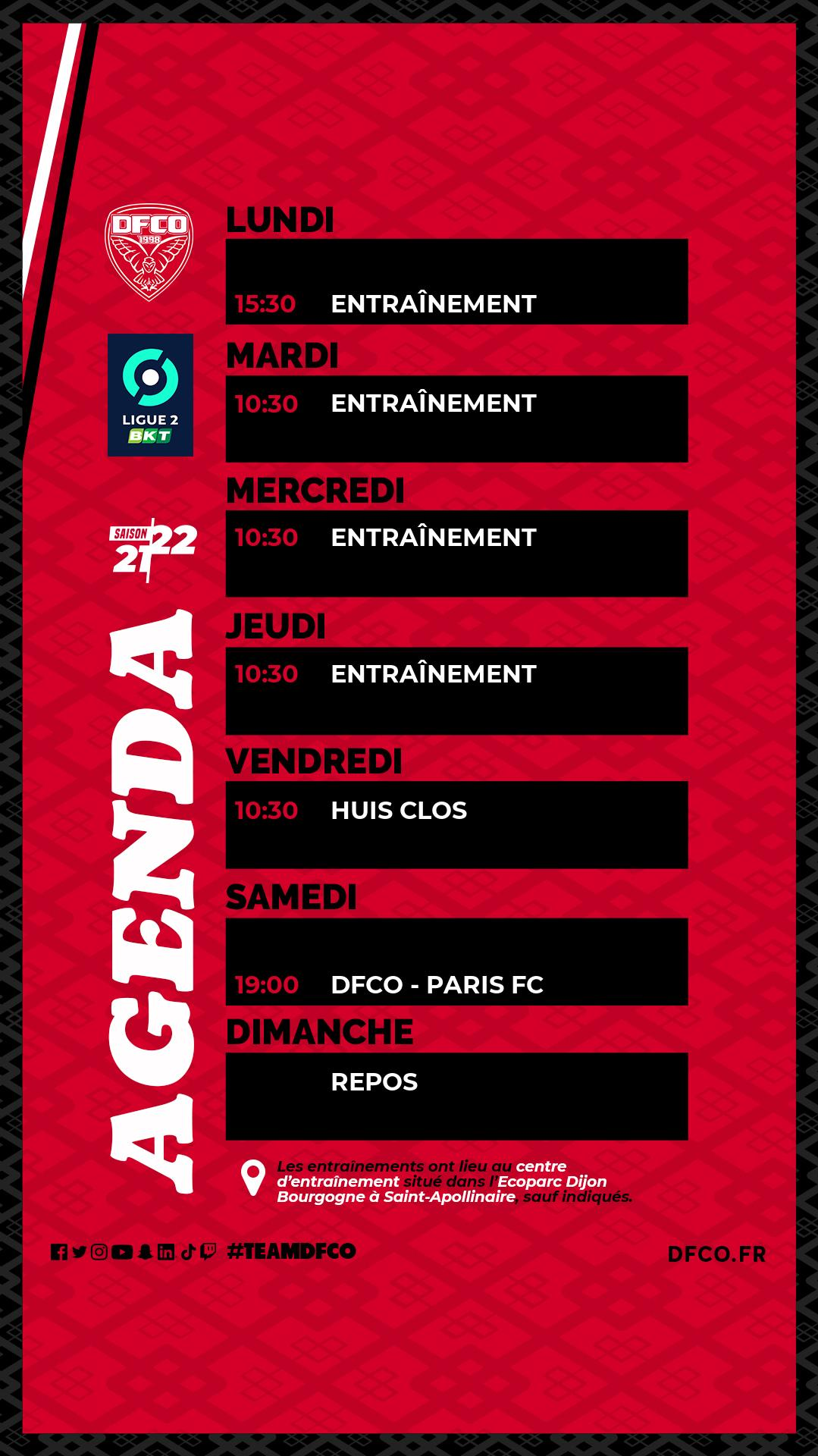 Le planning avant DFCO – Paris FC